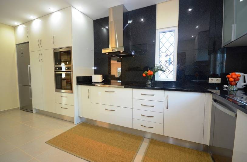 La cuisine, est équipée avec réfrigérateur, micro-ondes, four, congelateur, lave-linge, lave-vaisselle, vaisselle/couvert, ustensiles/cuisine, cafetière, grille pain et bouilloire.