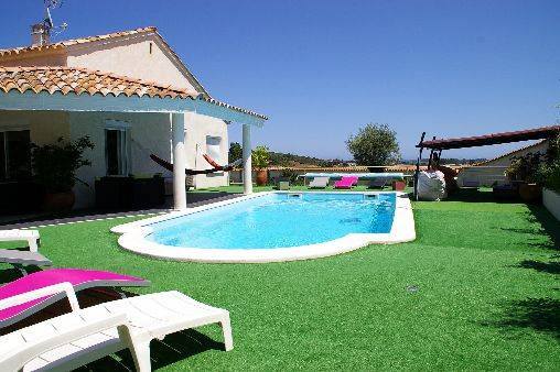 Loue Mini-Villa plain-pied neuve (2012) de 55 m² à Aléria indépendante de la villa du propriétaire. Climatisée, très calme, avec piscine privée, grande terrasse orientée Est, nord, Ouest (avec table, chaises, transats, plancha...) sans vis à vis, idéalement située à 3 km de la mer et des plages, 10kms des montagnes, 200m de tous commerces, centre commercial et toutes