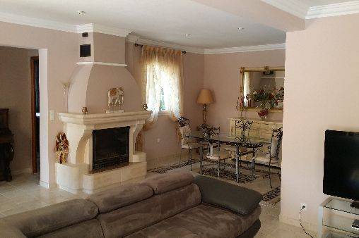 Salon: grand canapé 10 places+ écran LCD/ salle à manger: table+ buffet.