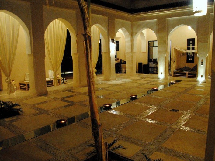 Entre ombre et lumière, au sein d'un jardin d'un hectare planté d'oliviers, de palmiers, d'orangers, de bigaradiers et de jacarandas, soigneusement entretenu par Abdessamad, l'atmosphère feutrée, propice à la détente, répond au chant des tourterelles.