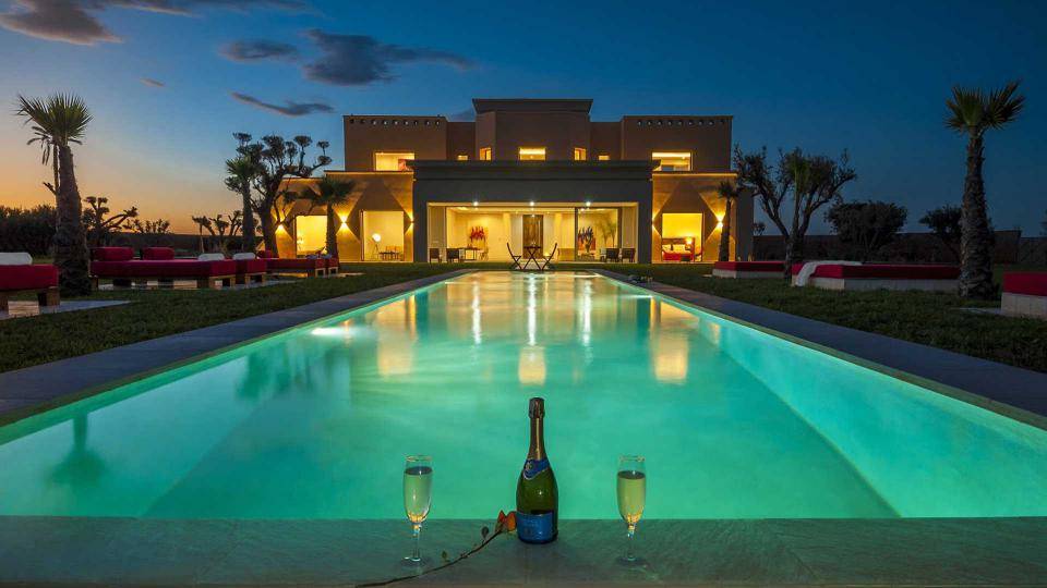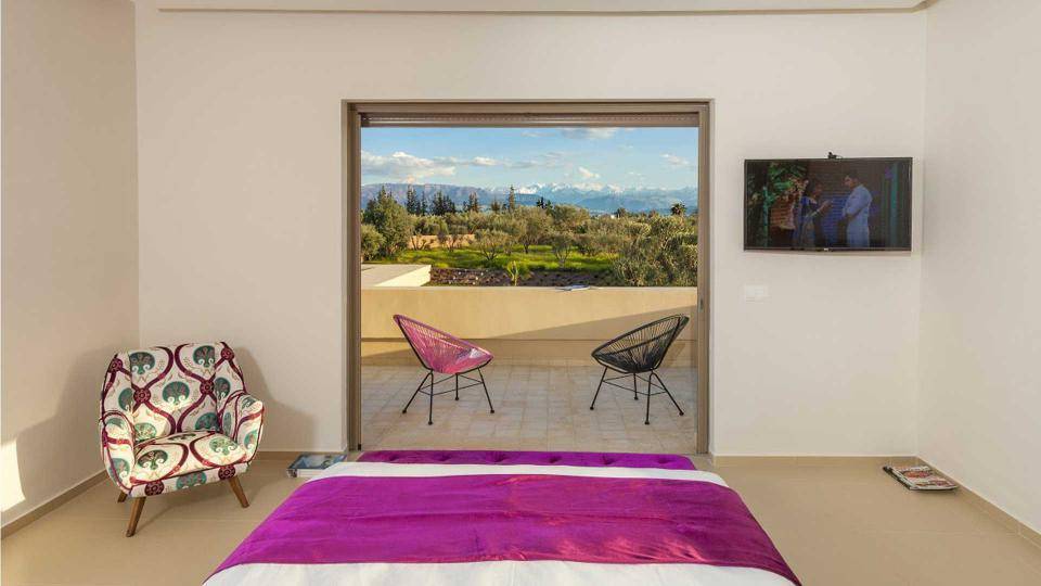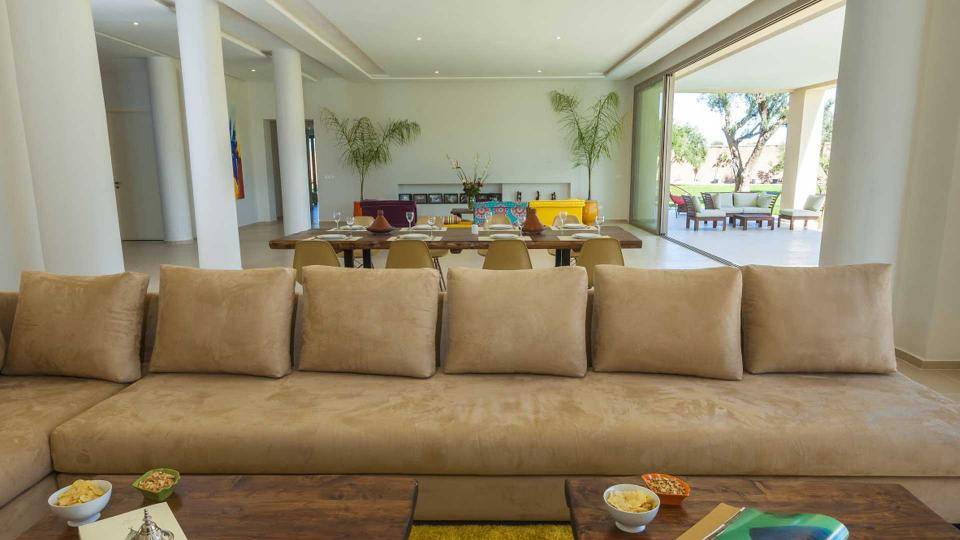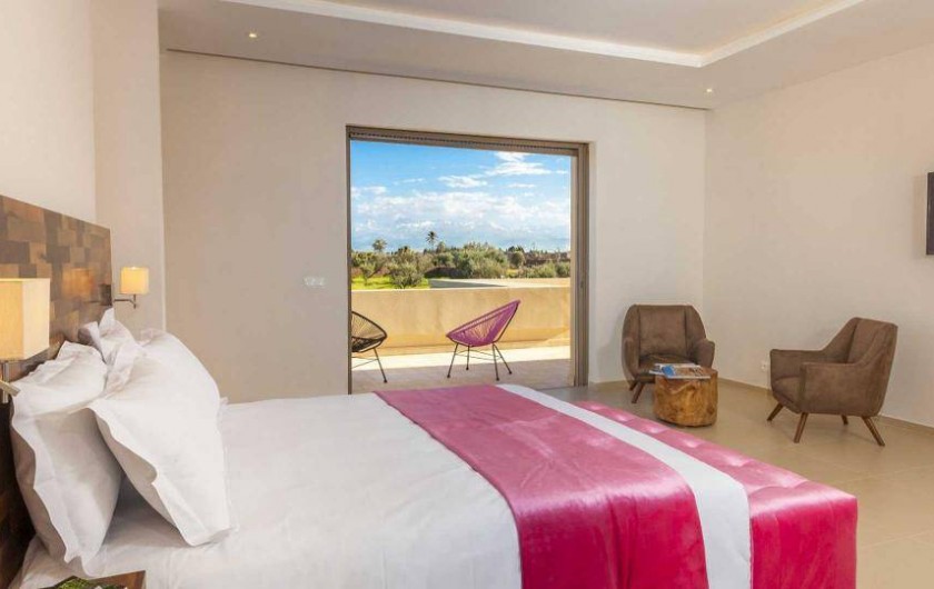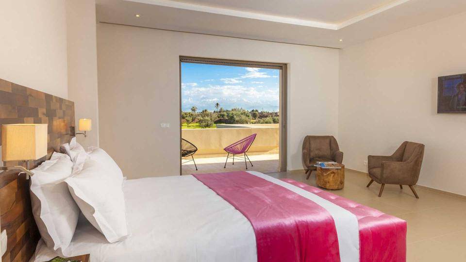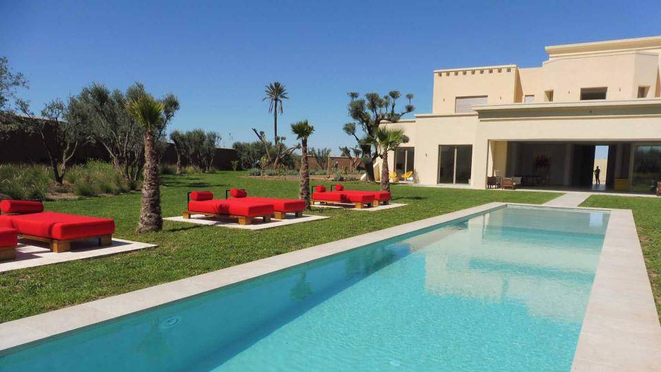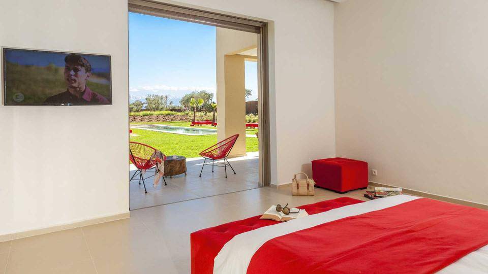 La villa Sesma est une villa de prestige neuve de 750m2 ,1300m2 bâtis, implantée sur un terrain de 1 Hectare clos au cœur d’un cadre paisible, bucolique face à l’Atlas et sans vis-à-vis.