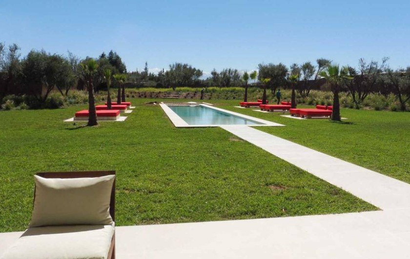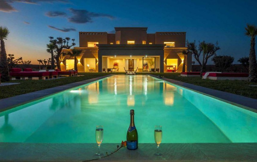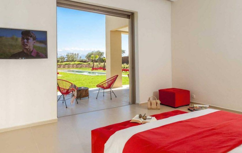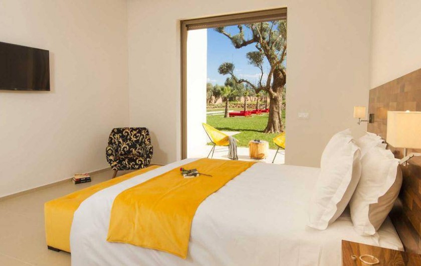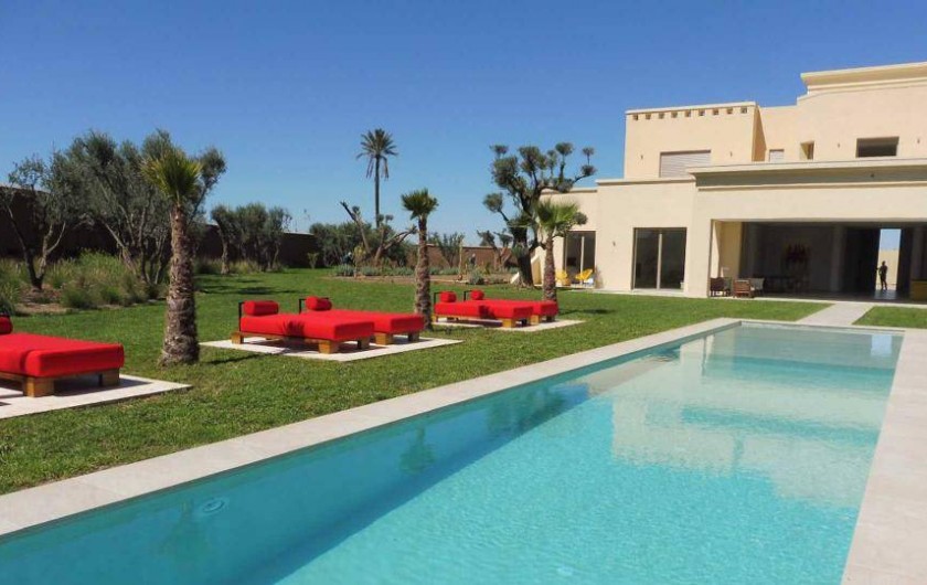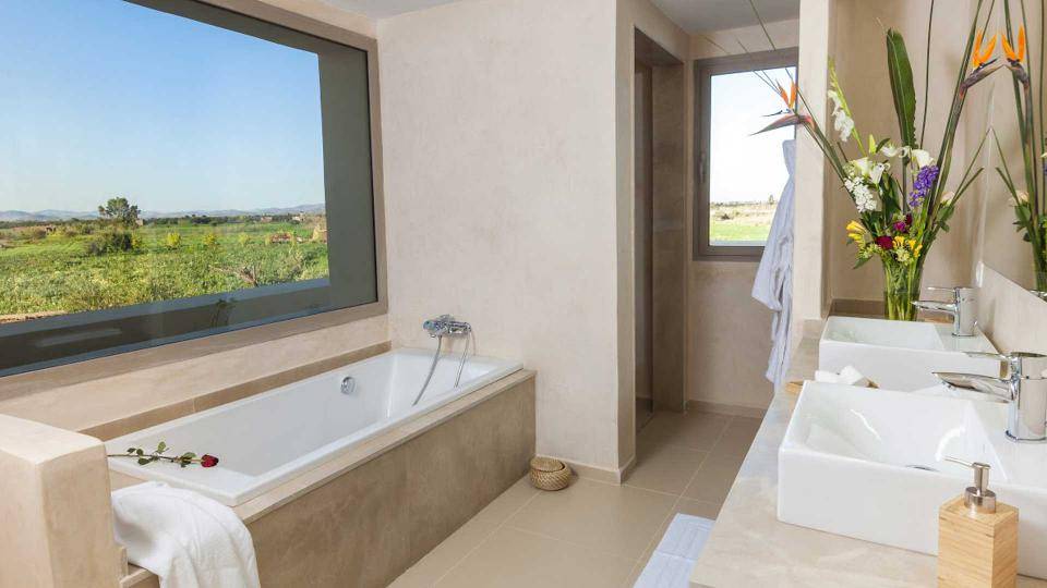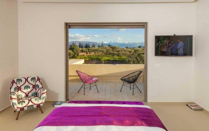 La villa Sesma est une villa de prestige neuve de 750m2 ,1300m2 bâtis, implantée sur un terrain de 1 Hectare clos au cœur d’un cadre paisible, bucolique face à l’Atlas et sans vis-à-vis.