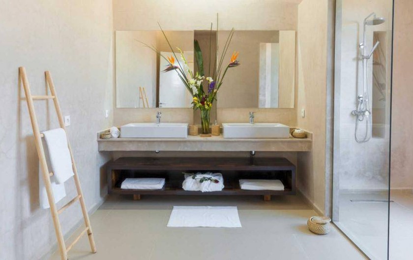 - La Suite Jaune : Lit double Tv full HD satellite, fauteuil, méridienne, salle de bain avec double vasque douche et wc, Dressing, coffre-fort, climatisation réversible, internet Wi-Fi, terrasse extérieure