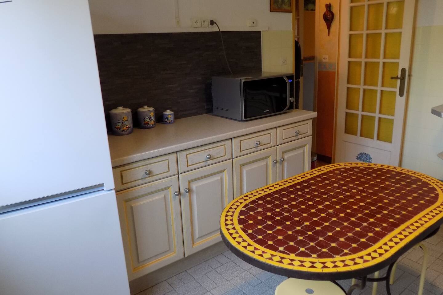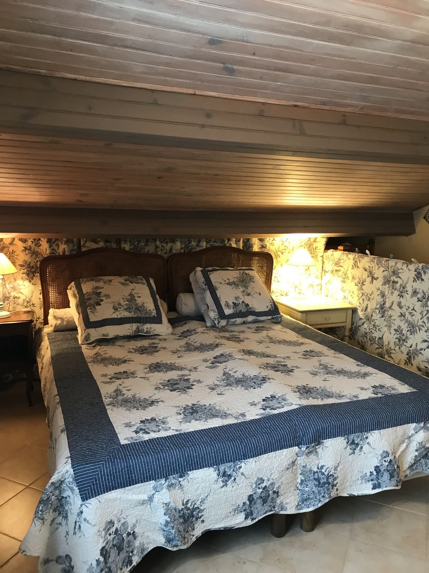 Il se compose d'une chambre avec un grand lit double, d'un coin salon comprenant une banquette- lit, d'une kitchenette/ coin repas( avec lave vaisselle, plaques électriques et four micro onde) et d'une salle d'eau. Il peut être loué avec le garage et l'accès au jardin et à la piscine à partir de 2 nuits. Me contacter pour plus de renseignements. : tarif à partir de 100 euros la nuit.