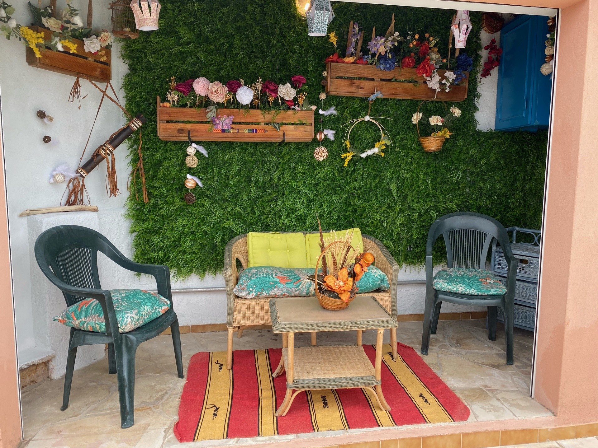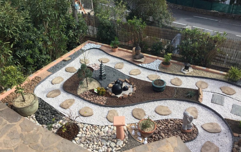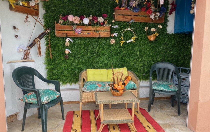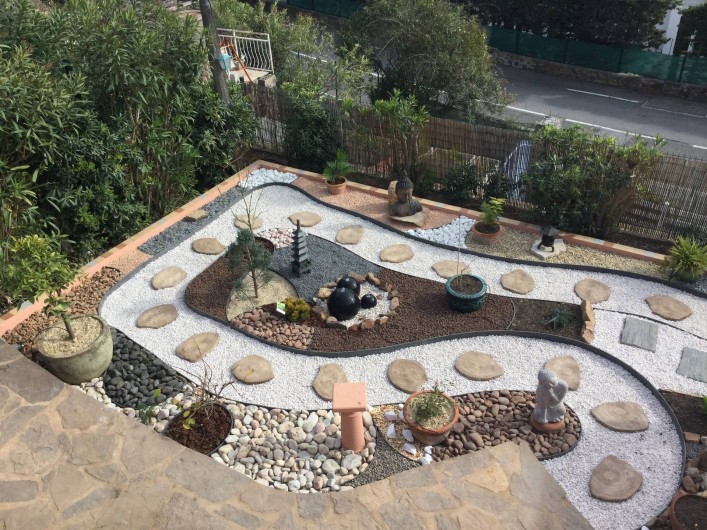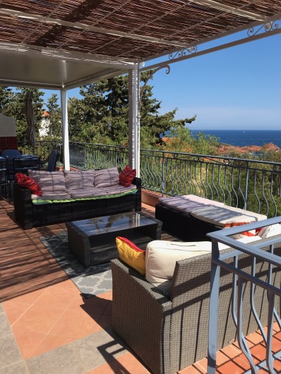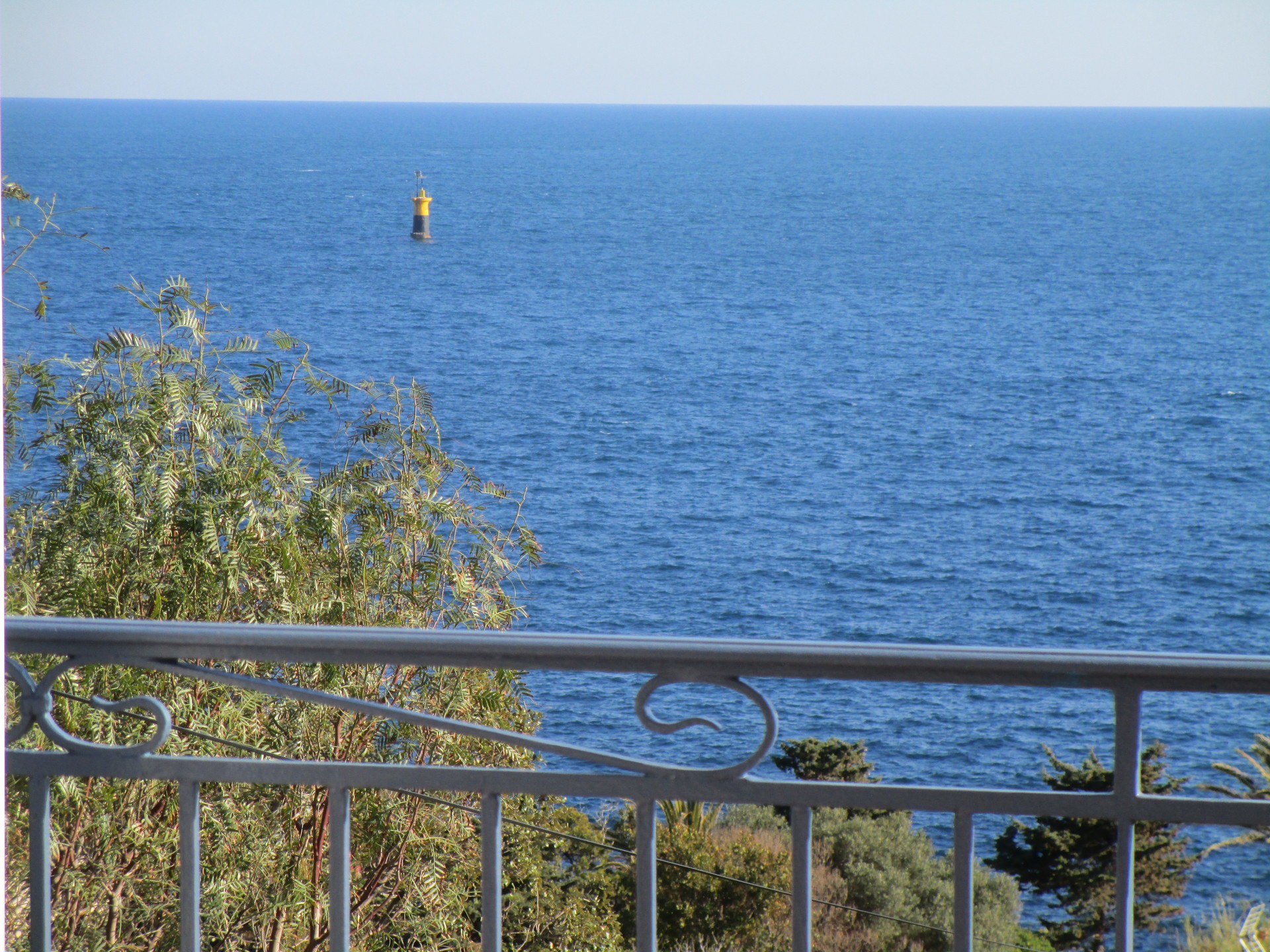 Un Rez-de-jardin climatisé, indépendant, pour 2 ou 3 personnes ( 2 adultes et 1 enfant) est installé sous la terrasse, face à la mer. Il est réservable jusqu'au 30 Avril puis à partir du 2 Octobre lorsque la villa est fermée.