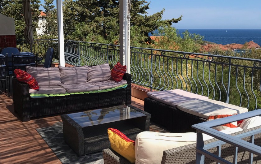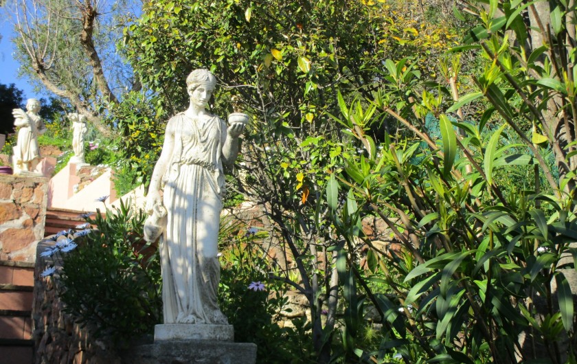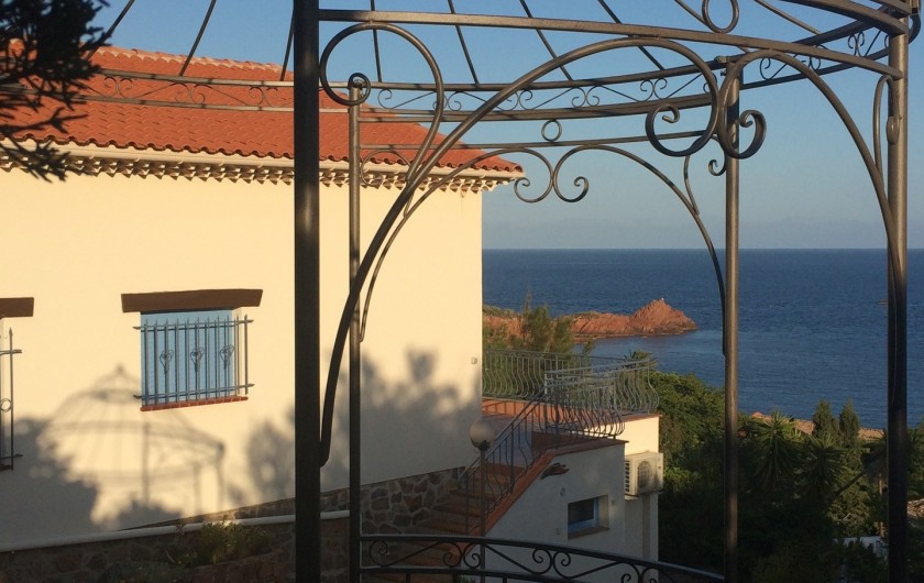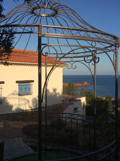 La maison est orientée plein sud face à la mer, au milieu d'un parc arborée planté d'essences Méditerranéennes. Une grande terrasse aménagée en salle à manger et en salon permet de déjeuner à l'ombre d'une pergola bioclimatique, tout en profitant de la vue sur l'île des vieilles, Ste Maxime et la pointe de St Tropez. Un garage privé et un parking public sont disponibles sans frais supplémentaires. Location au minimum à la semaine.