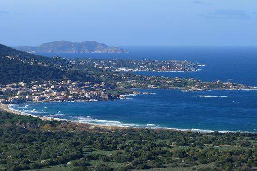 Belle villa de construction récente , climatisée, au calme , avec vue sur la plage d'Algajola et le village de San Antonino.