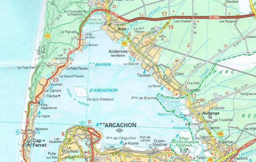 Elle est située à 500m du centre d'Arès, à 1km des plages du Bassin, à 8km de l'Océan, à 100m de la piste cyclable et d'une aire de jeux pour enfants, à 4km d'ANDERNOS et 23km du Cap Ferret.