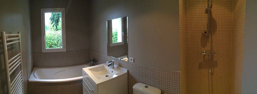 •2 salles d'eau avec douche et bain ( une baignoire, deux douches italiennes)