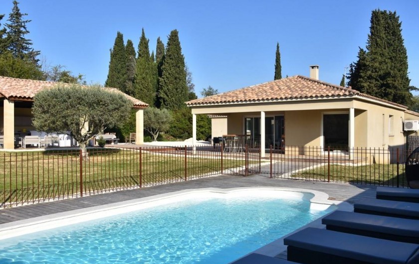 Villa contemporaine récente de 10 personnes entièrement climatisée située dans un joli petit village du Gard à 4 kilometres d'Uzes où l’on peut trouver épicerie, boulangerie, restaurants, pharmacie et médecin.