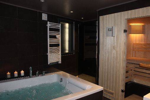 Espace SPA privatif avec accès sur le jardin et la terrasse.