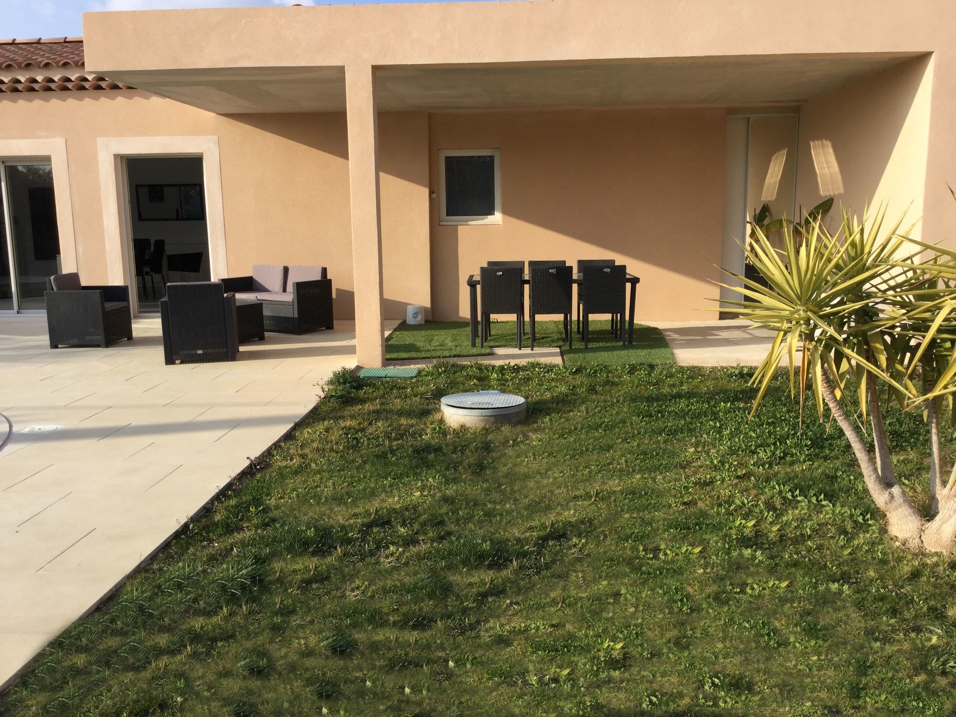 Vous apprécierez sa belle et grande terrasse de 80m², tout autour de la Piscine.