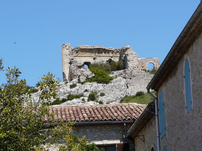 Les ruines du château sont éclairées en début de soirée. Vous serez émerveillés par la lumière du coucher de soleil qui fait rougir les falaises de la Civadière (site d'escalade).