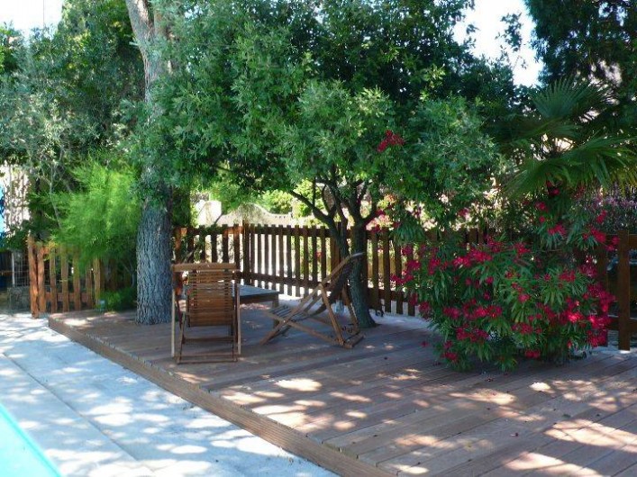 Le jardin (à l'usage exclusif des locataires), sans aucun vis à vis, est clôturé, arboré et comprend une piscine privée, sécurisée par une clôture et une alarme. Pétanque et ping-pong vous feront profiter également d'agréables moments.