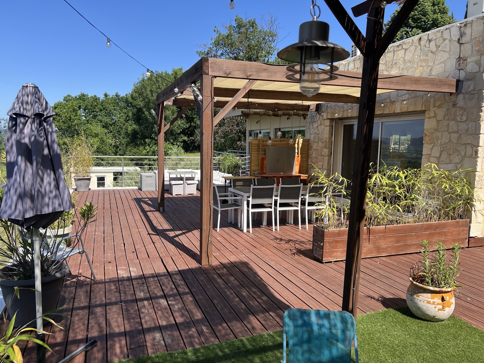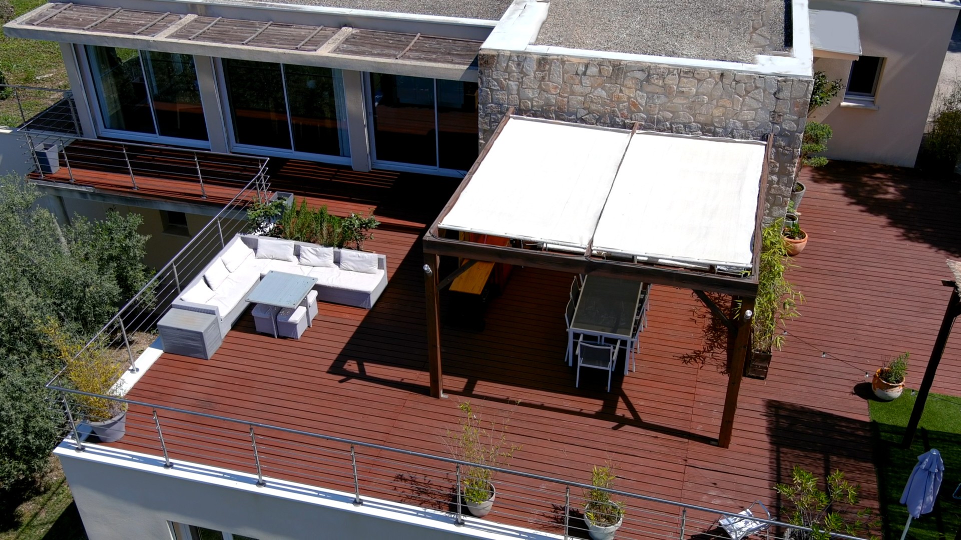 La villa dispose d’une terrasse avec vue panoramique de 100 m2 avec table pour le repas et salon de jardin. Une plancha professionnelle est mise à disposition.