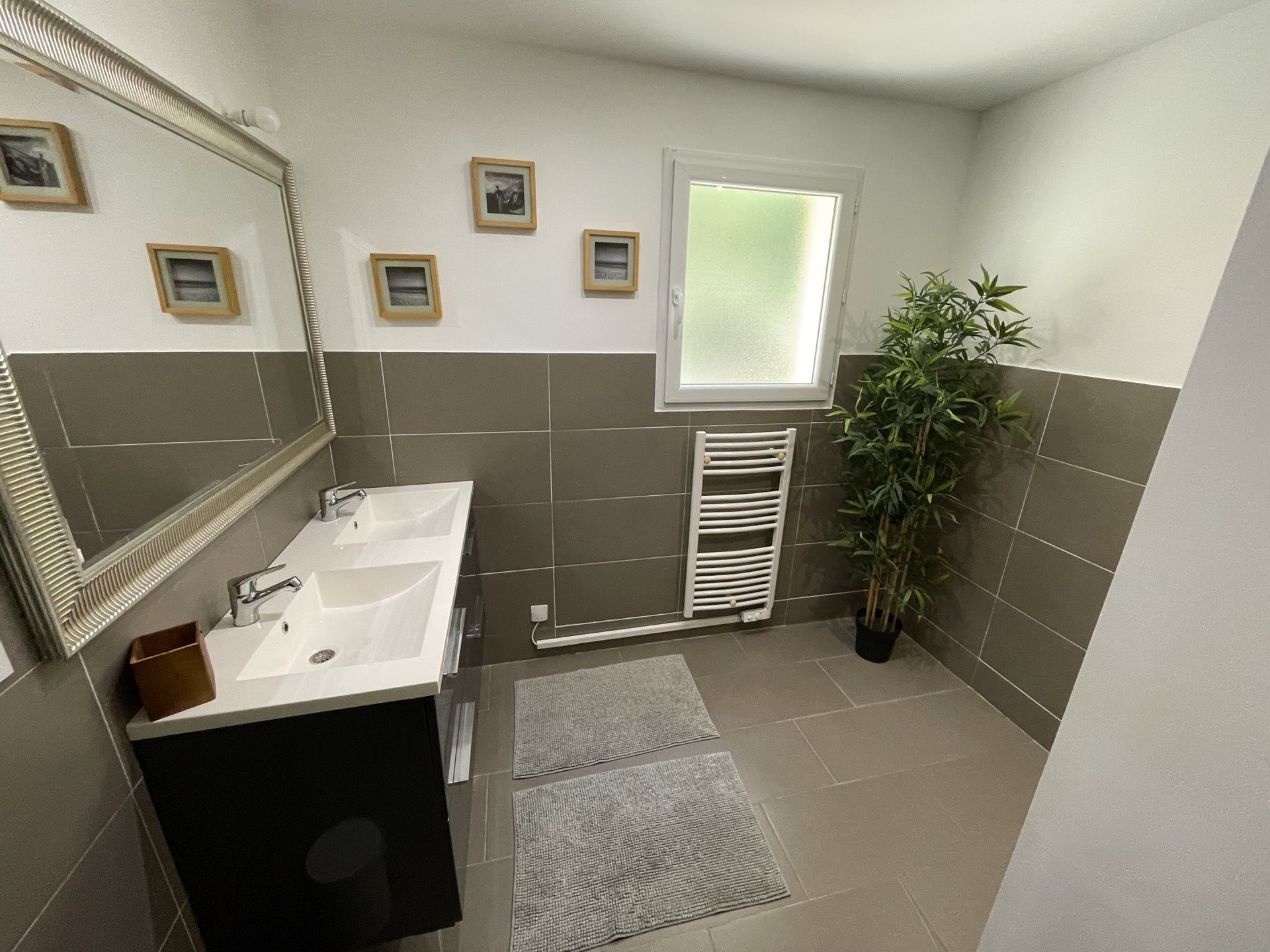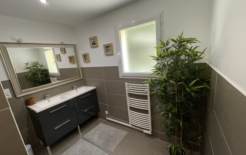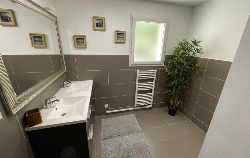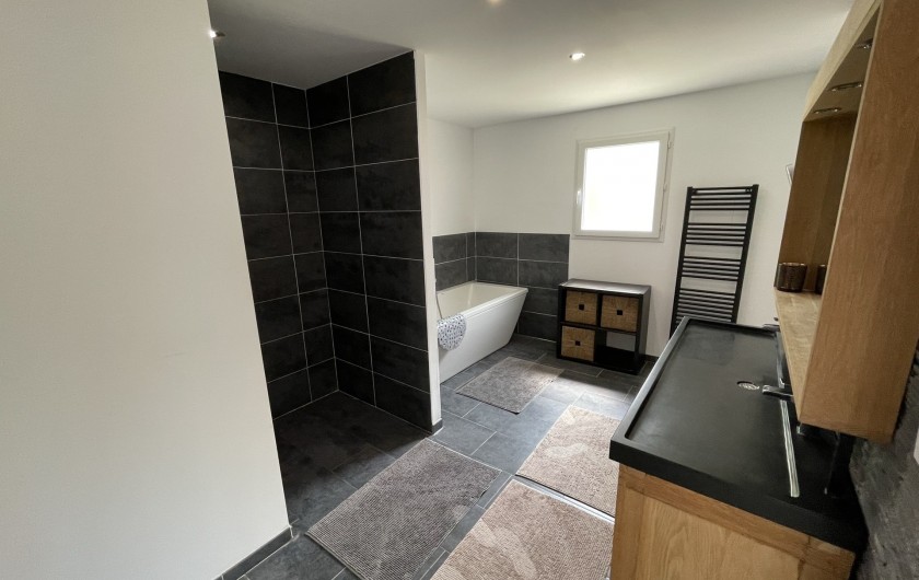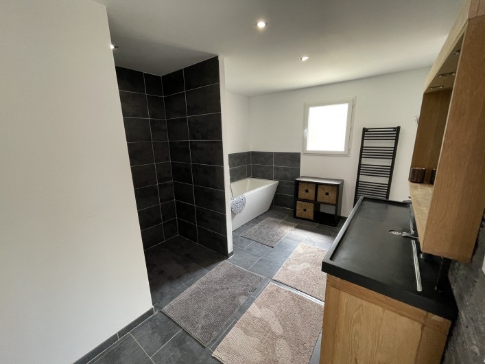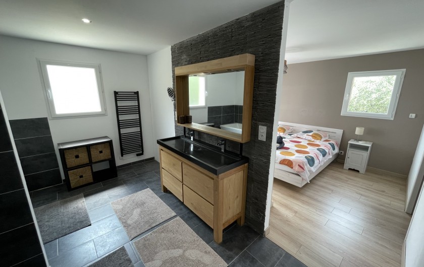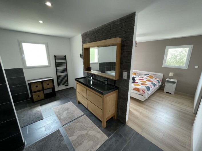 Chambre 1(25 m2) : 1 lit 180X200 / 1 douche italienne / 1 baignoire / 1 meuble double vasque / 1 sèche serviette.