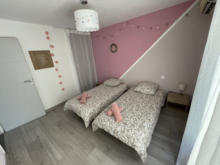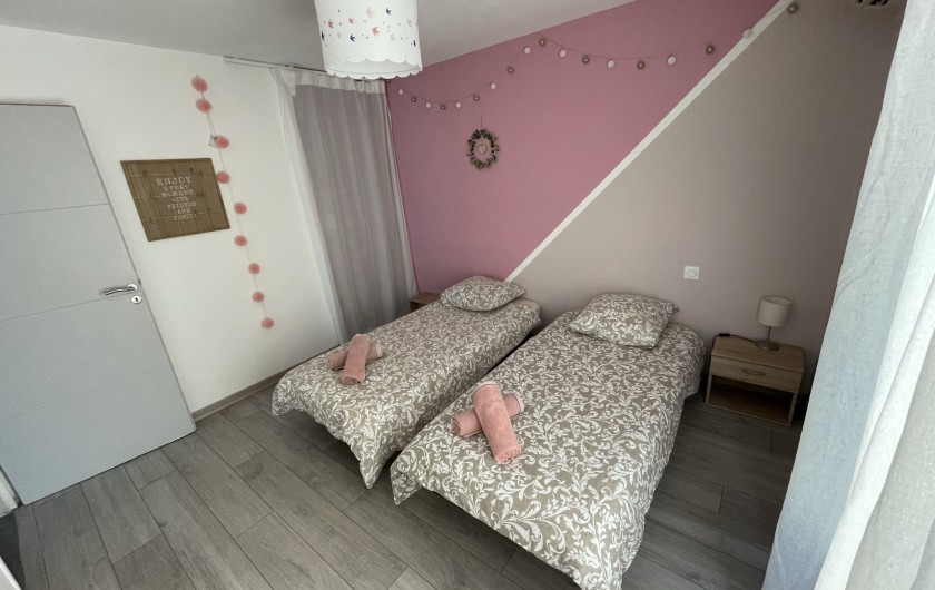 Chambre 4 (13 m2) : 2 lit 90X190 (1X 180X200 selon demande) / 1 placard de rangement