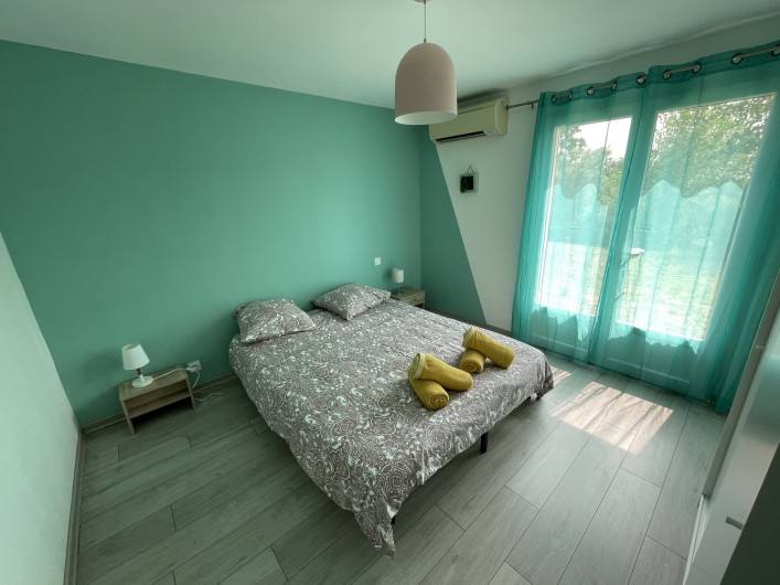 Toutes les chambres donnent accès au jardin comprenant une balançoire pour enfant.