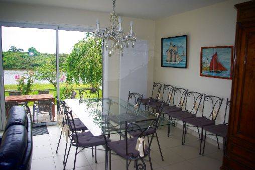 la maison a été complètement refaite pour rendre le rez de chaussée plus spectaculaire : pour ouvrir toute la vue par une baie immense de 4m50 totalement ouvrante, son jardin de 1000 m2 descend en pente douce jusqu'à l'eau