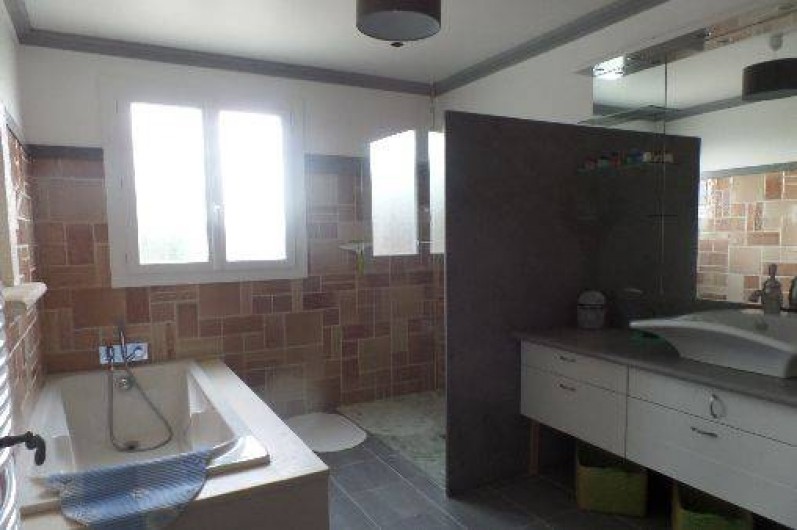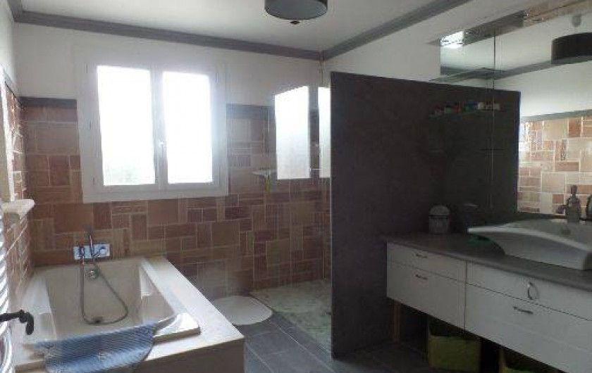A l'étage 3 chambres 2 lits en 90, 1 lit en 140, 1 lit électrique articulé en 160 (2x80) ; 1 W.C. ; 1 salle de bains avec douche à l'italienne ; 1 rangement ; Au rez-de-chaussée une grande pièce unique avec cuisine toute équipée, séjour, salon avec 2 canapés ; 1 W.C. ; 1 cellier ; entrée privée avec une place de parking ; terrasses et jardins privés ; piscine clôturée à partager avec les vacanciers d'un appartement mitoyen identique en