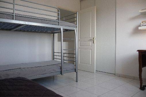 Etage : 2 chambres (une avec un lit de160×200, l'autre avec un clic-clac de 140×190 et deux lits superposés de 90×190),