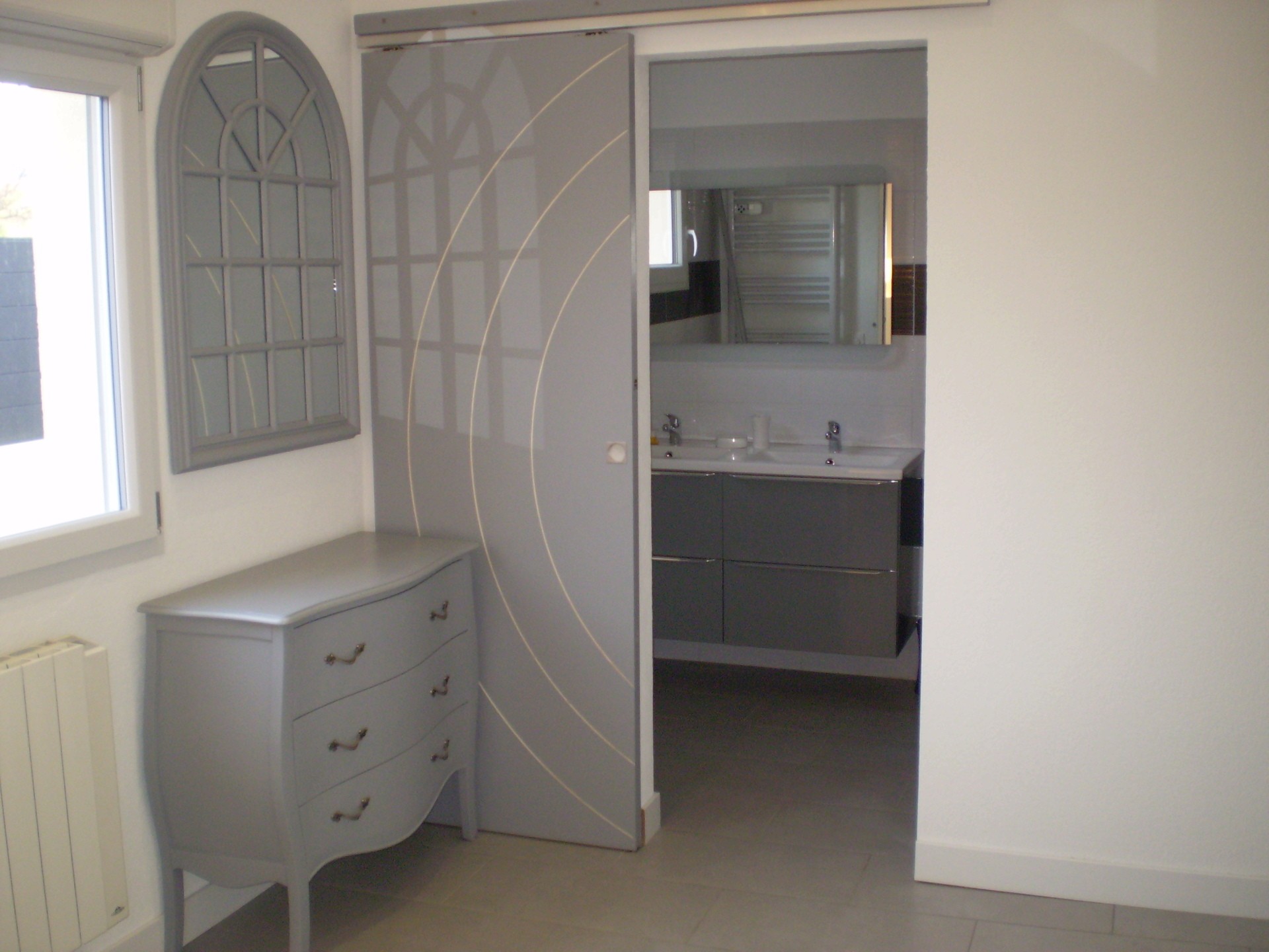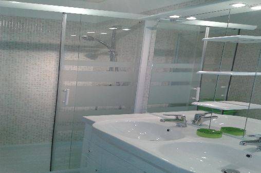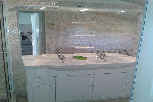 salle de bain , meuble 2 vasques et grand miroir cabine de douche , WC .sèche cheveux