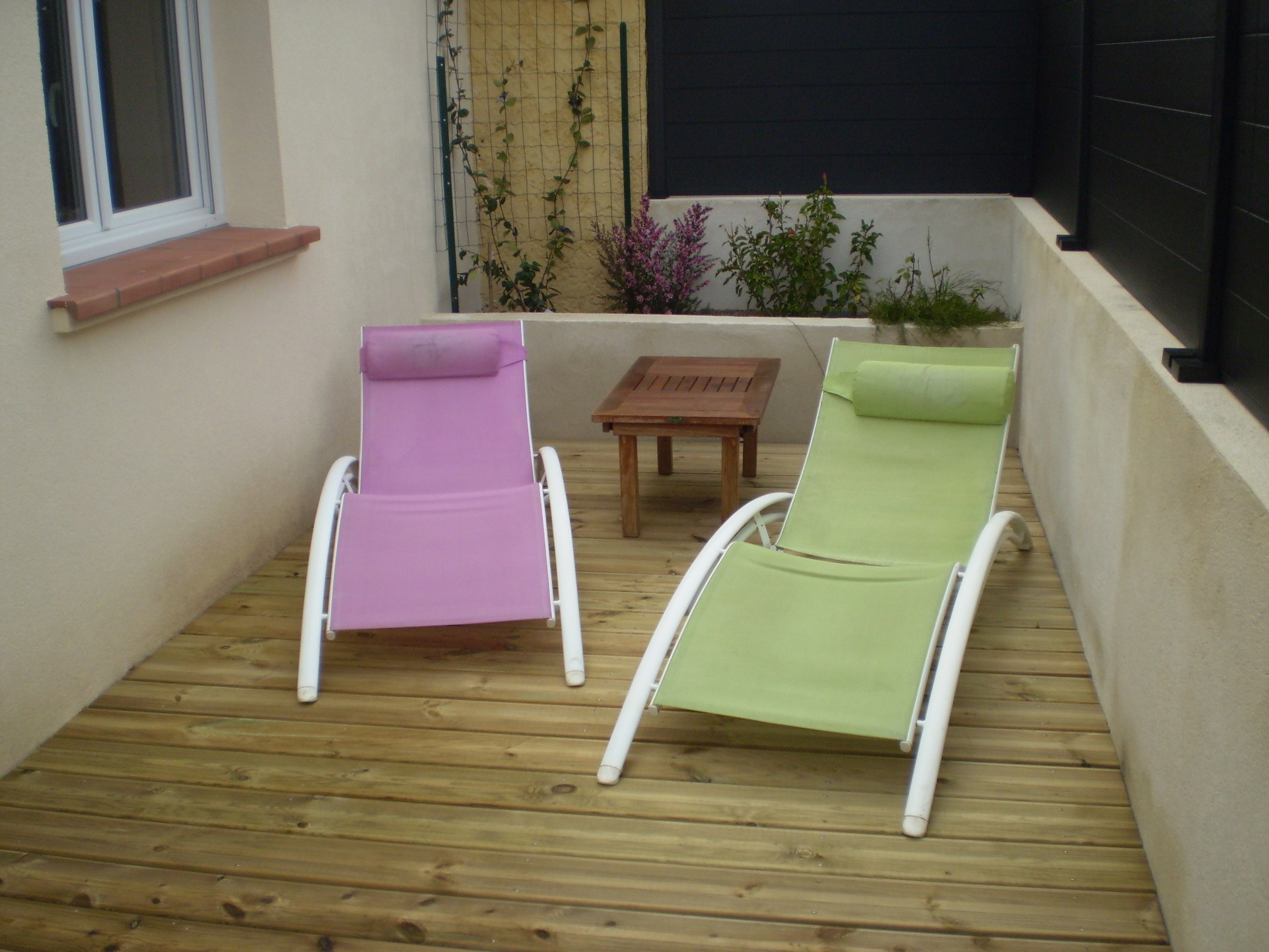 Location d'une jolie villa de 40 m2 plein sud avec terrasse de 30m2 dallée avec jardin clos ;tonnelle salon de jardin,