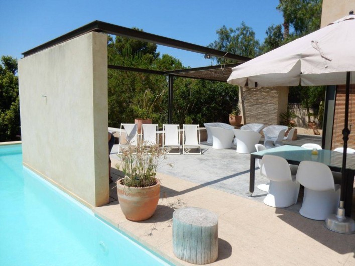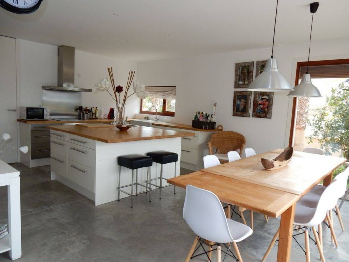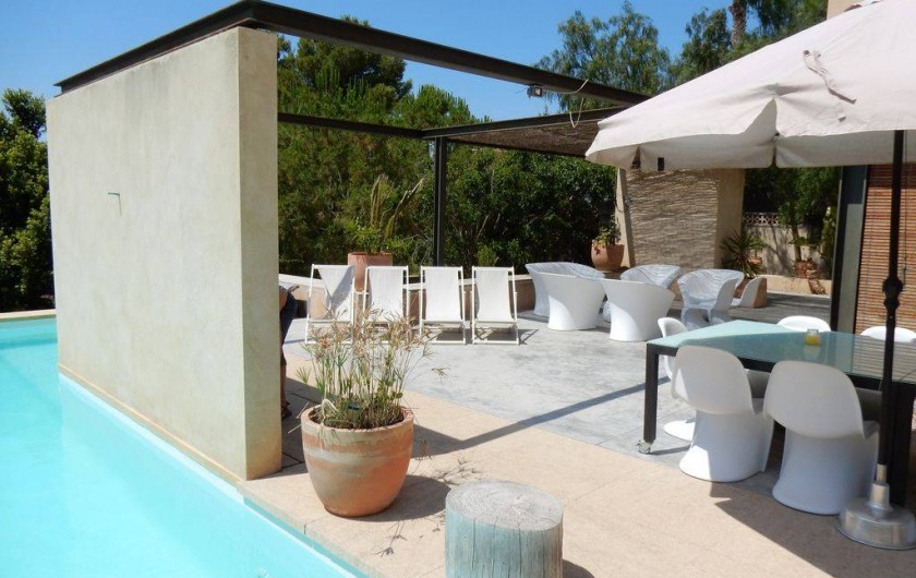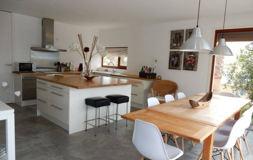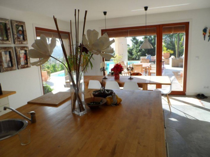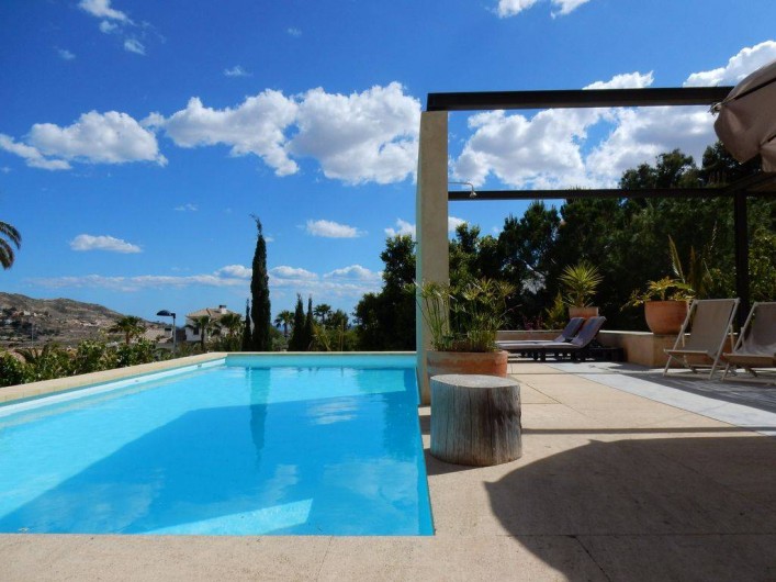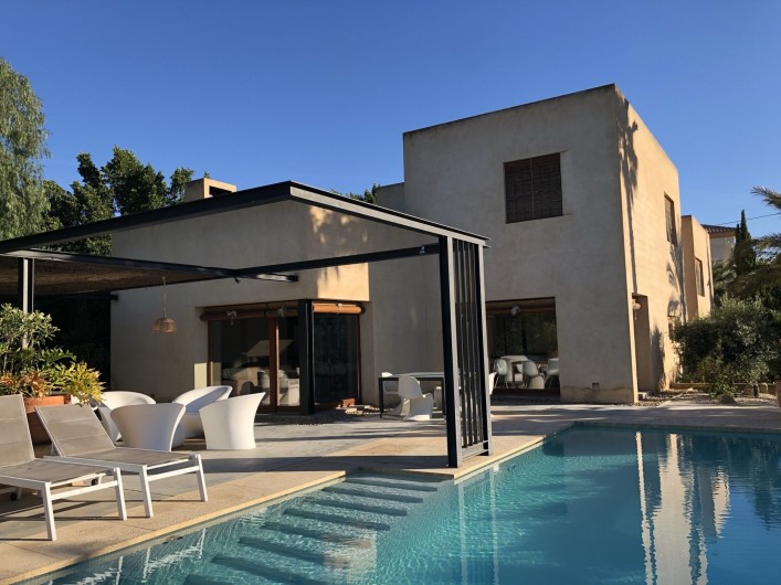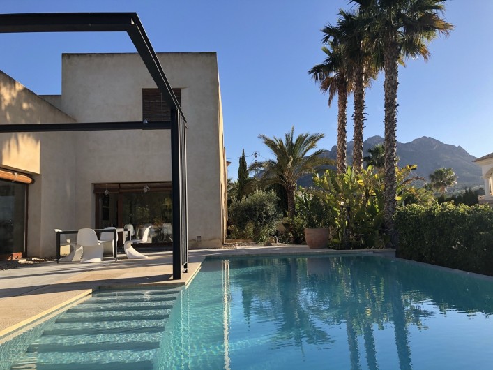 Située à proximité des plages d'El Campello et de San Juan, ainsi que du golf 18 trous de Busot, villa d'architecte cubique, moderne et lumineuse terminée en 2012 avec 5 chambres doubles, 4 salles de bains, grande cuisine hyper équipée avec coin repas, salon avec feu de bois, belle salle à manger, le tout ouvert par de grandes fenêtres sur une terrasse partiellement ombragée et sur la piscine de 45 m2. Le tout est meublé de mobilier contemporain. Jardin privatif planté d'essences rares et exotiques. Entresol de 140 m2 comprenant une salle de sport complètement équipée, un coin … cinéma avec grand écran, snooker ou billard américain, ping pong et couchages supplémentaires. La maison est située dans un quartier chic et récent de Busot où les routes et trottoirs viennent d'être terminés et où tous les cablages sont dans le sol. Environnement privilégié à 5 minutes des grandes surfaces et des plages. Lire moins Lire la suite