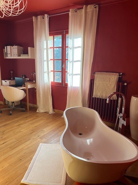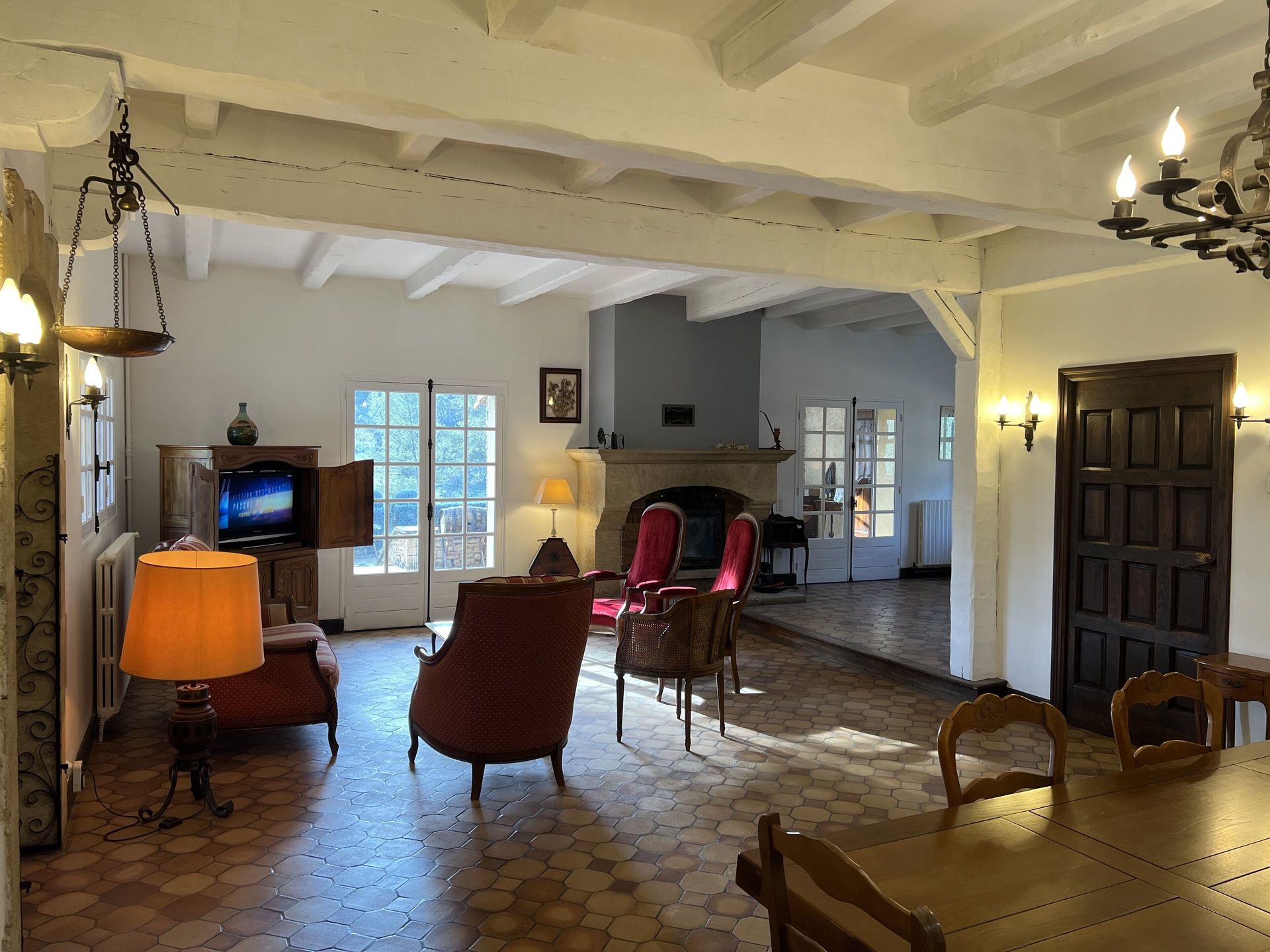 - une pièce à vivre de 70 mètres carrés, avec cheminée et bureau, s'ouvrant sur une terrasse