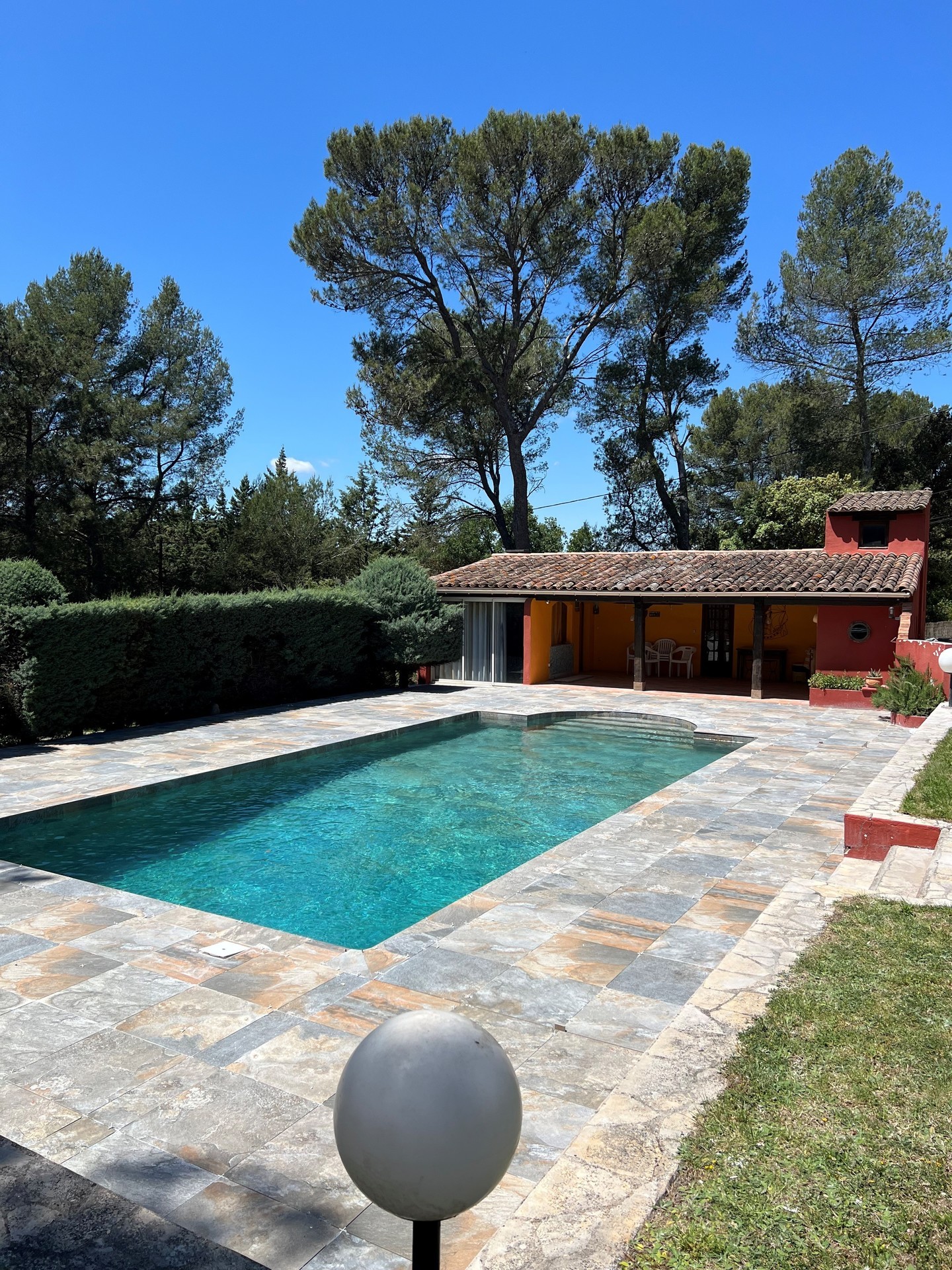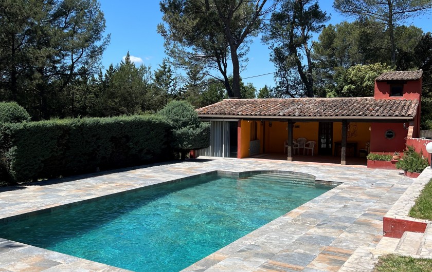 La maison et la maisonnette, au charme provençal, en pierres naturelles, poutres vintage et terres cuites, jouissent du calme d'un parc arboré de 6000 mètres carrés avec piscine à l'eau salée (11mètresx5,5mètres), plage et patio avec salle de douche et toilette, fauteuils, chaises, tables de jardin, chaises longues, four à pizza et barbecue, se situent à équidistance (1,5 km seulement) des villages de Cabriés et de Calas offrant toutes commodités.