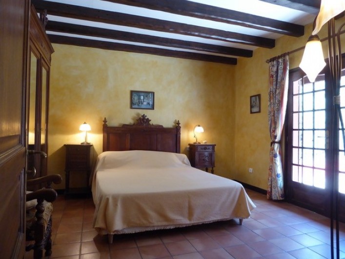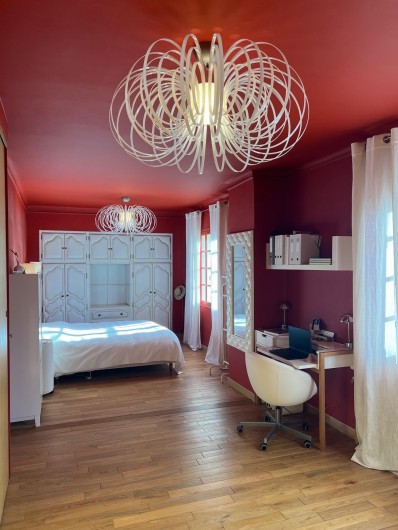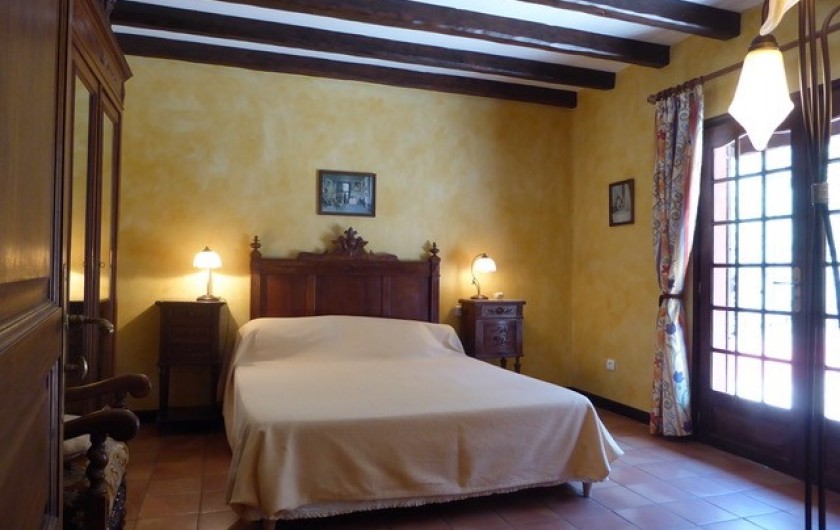 - une chambre avec un grand lit double,