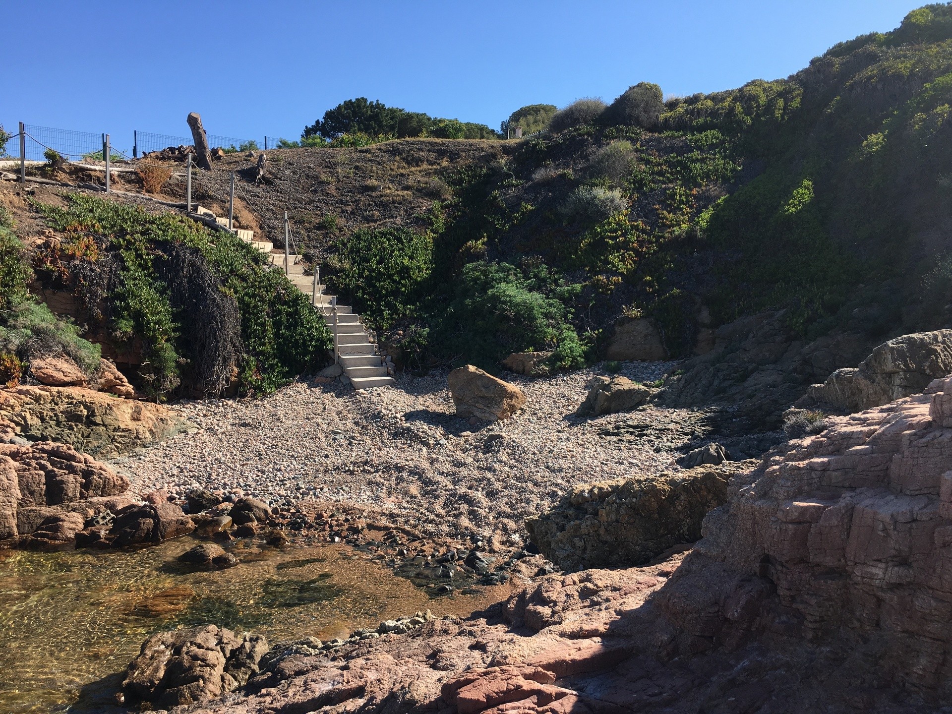 La vue sur mer y est panoramique depuis tous les points du terrain. En bas de ce même terrain, vous trouverez un petit escalier qui vous mènera à une petite crique que vous ne partagerez qu'avec la maison de la parcelle voisine. L'immense plage de la Liscia n'est qu'à 2 km. La maison se trouvant en contrebas d'une petite route de desserte locale, vous pourrez profiter au calme de
