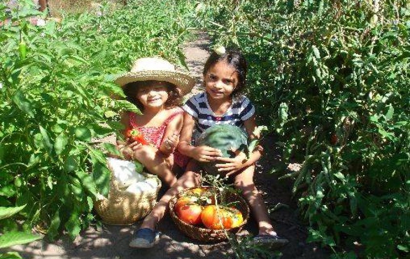 Balançoire pour les plus jeunes, espace pour jouer au ballon ou construire des cabanes dans les arbres avec les bambous en toute sécurité loin des routes.