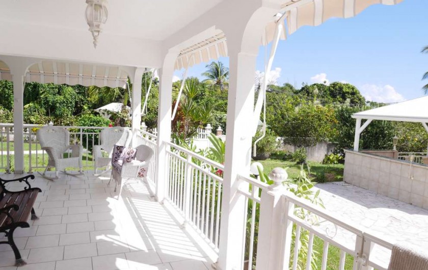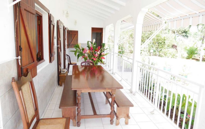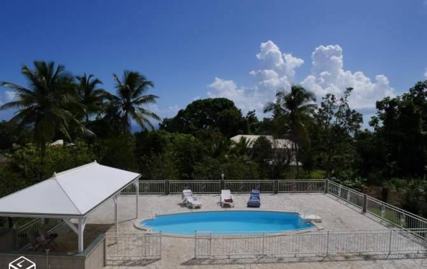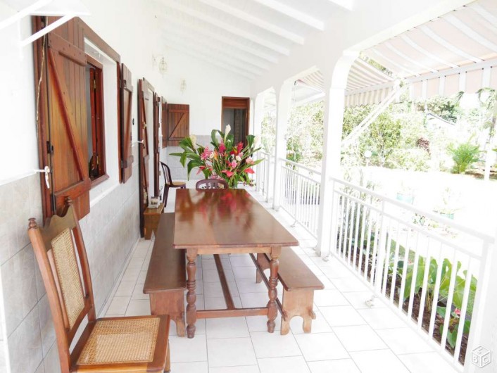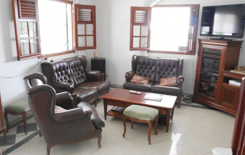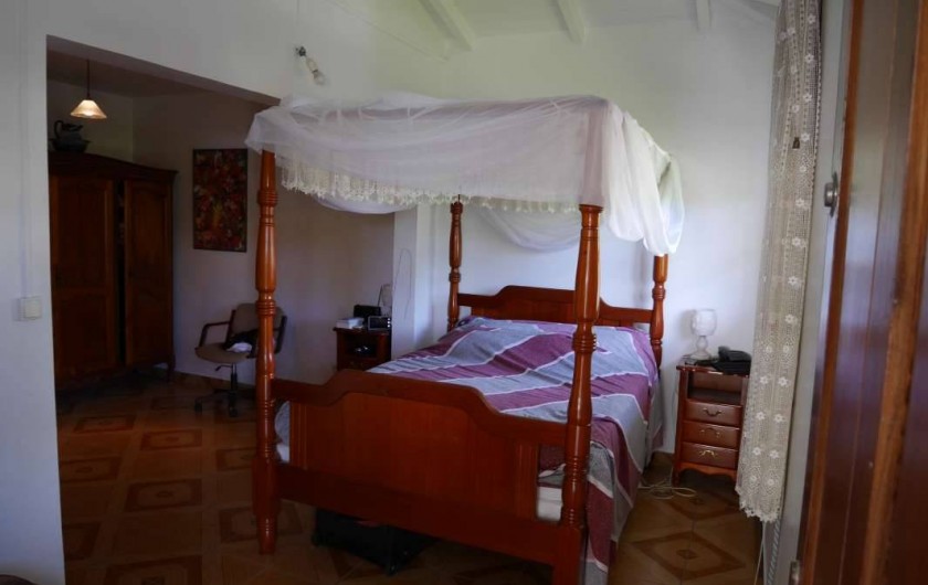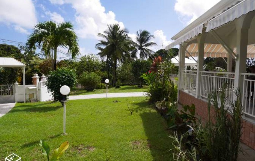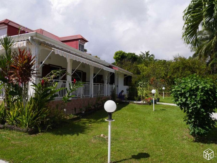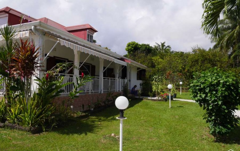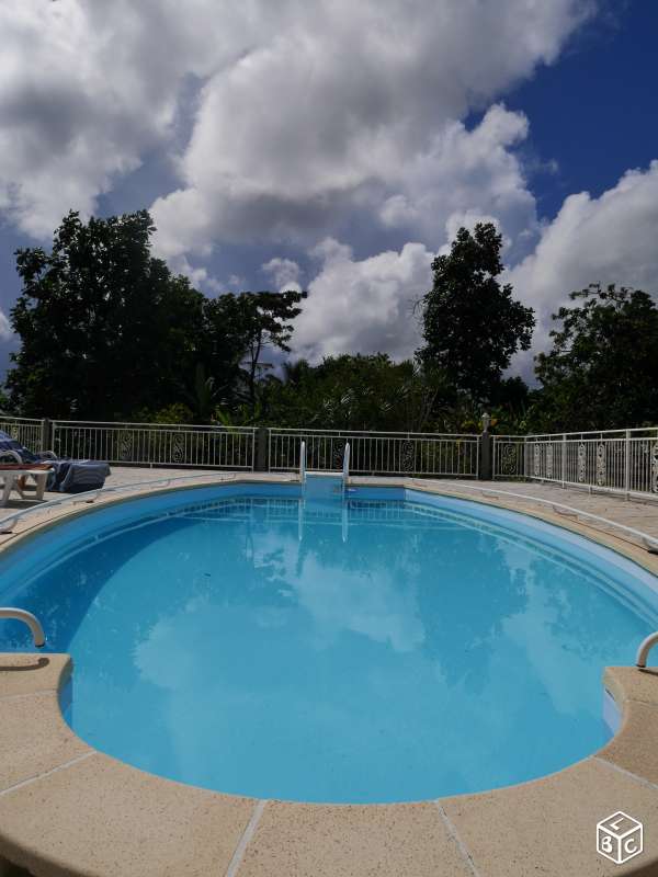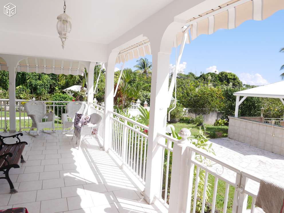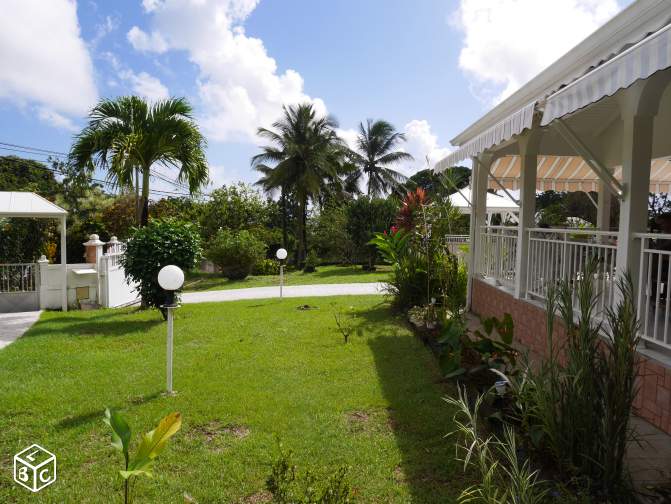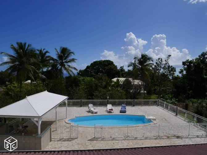 Très jolie et grande villa dans les terres sur les hauteurs de Capesterre Belle Eau, au pied des chutes du Carbet, au milieu d'un grand jardin tropicales, dans un parc fruitier de 6000 M2 avec une très jolie vue.