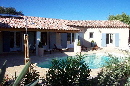 En bordure d'un petit village typique au cœur de la Provence Verte, villa provençale à louer sur terrain clos de 2500², entièrement équipée, avec piscine (8x4) sécurisée (alarme), tout confort, pour 8 personnes (et un BB).