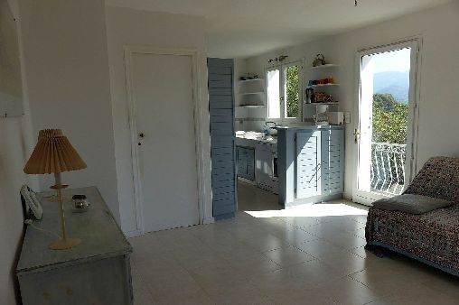 Corse du Sud - Cargese sur la plage du Pero - Villa 4 Pièces 55 m2 - pour 5-6 personnes. Située au bout d'une route privée (grand parking) à 1Km du centre du village de Cargèse. Deux terrasses sur grand jardin fleuri, avec bassins (poissons rouges), dominant la mer et vue dégagée sur toute la baie (vue sur la tour génoise d'Omigna). Séjour, cuisine américaine, 3 chambres, salle d'eau (lavabo, douche et WC).