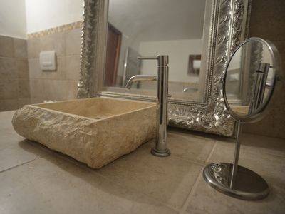 Maison de village pittoresque et entièrement rénovée au centre de la Puglia; la terrasse prolonge un logement sur plusieurs niveaux où chacun trouve sa place et son intimité dans cette maison caractéristique des lieux. Au calme elle est situé directement à l'entrée d'un charmant centre historique où chaque soir le village s'anime et où les enfants peuvent joyeusement s'égayer dans la zone piétonne; aucun problème de parking à aucun moment de la journée. A' seulement 5 km des nombreux et magnifique plages. Maison ideal pour qui veut allier charme et confort tout en plongeant ( … au propre comme au figuré) au cœur du Salento! Lire moins Lire la suite