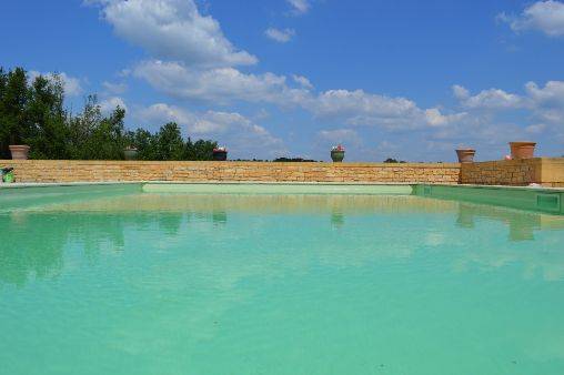 Une grande terrasse, exposée sud et de 200m² entoure la piscine de 11 mètres par 6.