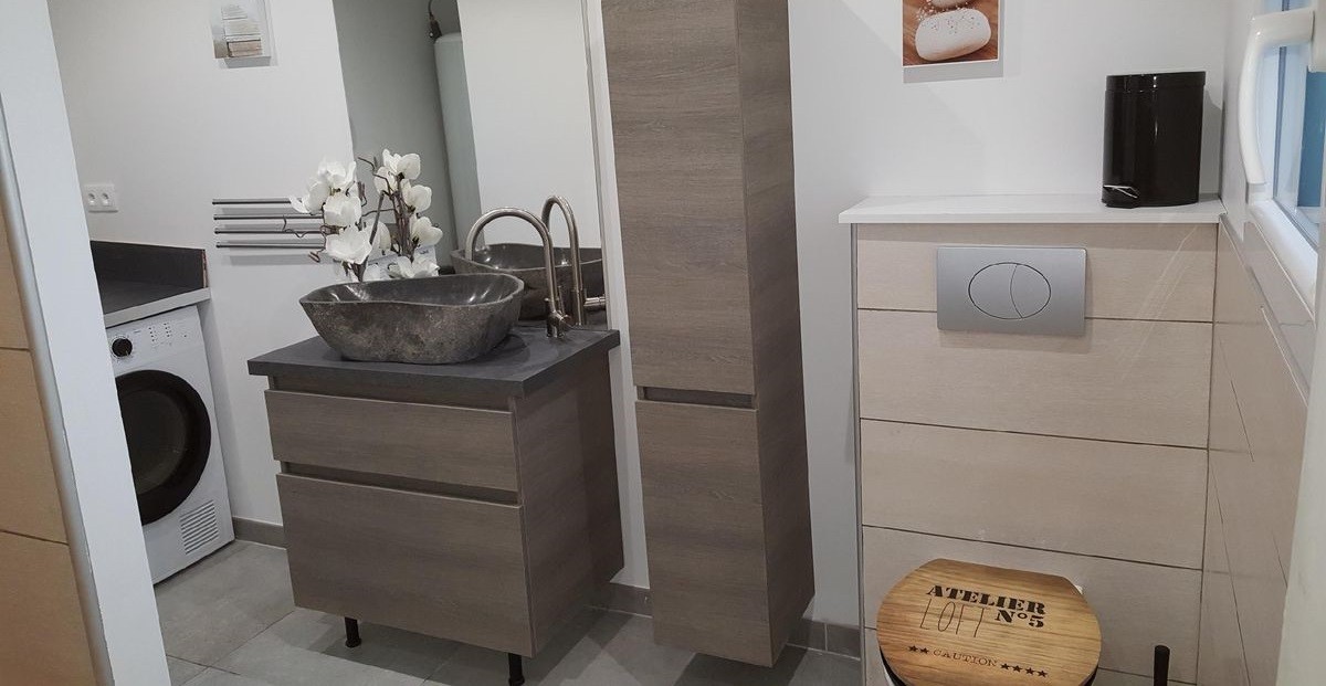 Salle d'eau avec douche à l'italienne et wc (lave-linge, sèche-linge)