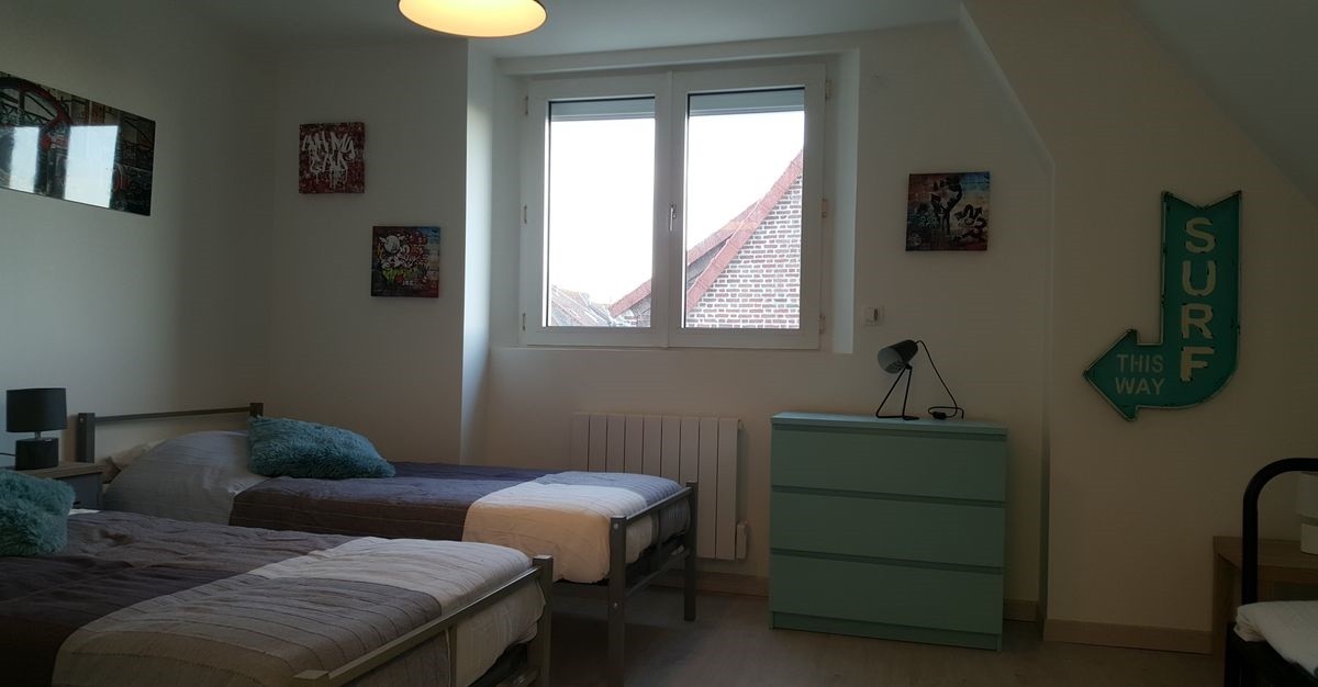et l'autre avec 3 lits de 1 personne de 90 + un lit d'appoint de 1 personne de 90