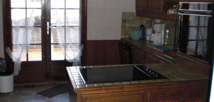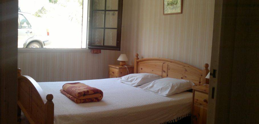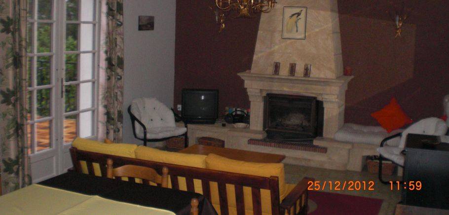 à manger avec cheminée ouvrant sur la terrasse, 3 chambres avec une salle de bains chacune. A l’étage, une grande et une petite chambre ainsi qu’une grande salle de bain et un WC.