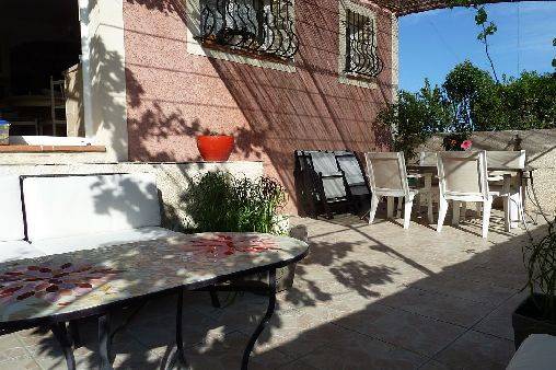 - Terrasse de 23 m² ombragée (par une pergola et des vignes à raisins) et équipée (salon de jardin + 2 banquettes + barbecue)