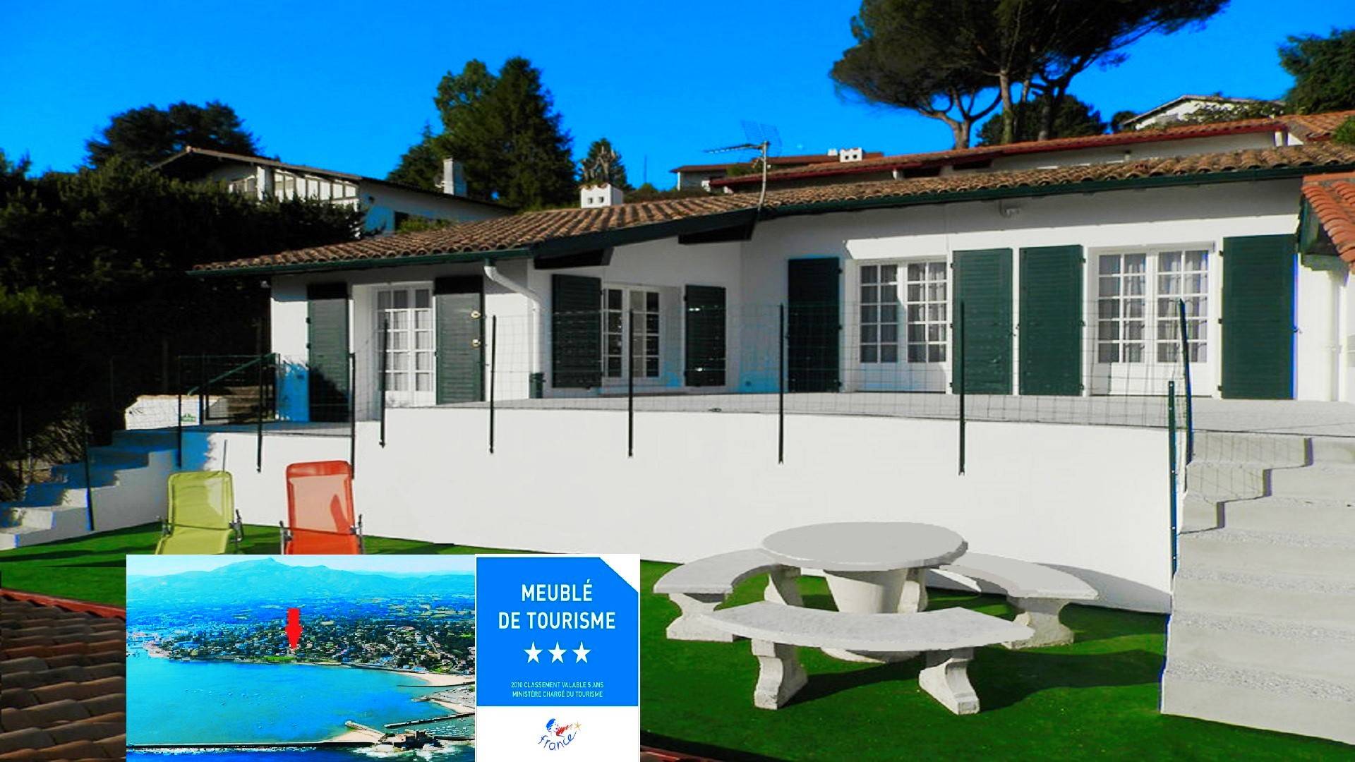 est une magnifique villa moderne entièrement rénovée offrant depuis sas double terrasse de 100 m2 une vue panoramique sur la baie de St Jean de Luz du fort de Socoa et de la Digue de Vauban