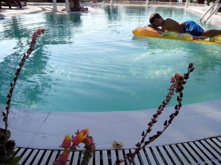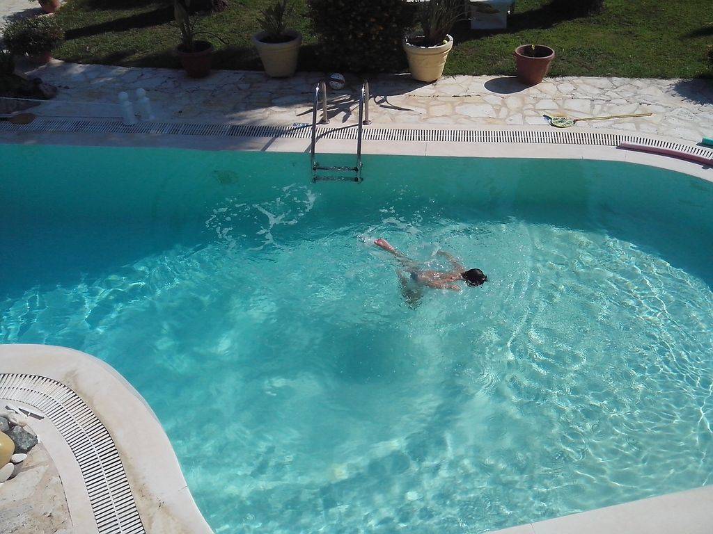 La grande piscine privée de 10 mètres est situé au milieu des terrasses bien aménagées et il y a beaucoup de zones à choisir de lire un bon livre en toute tranquillité!