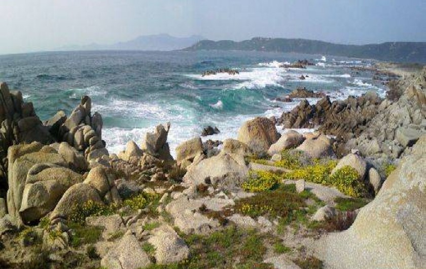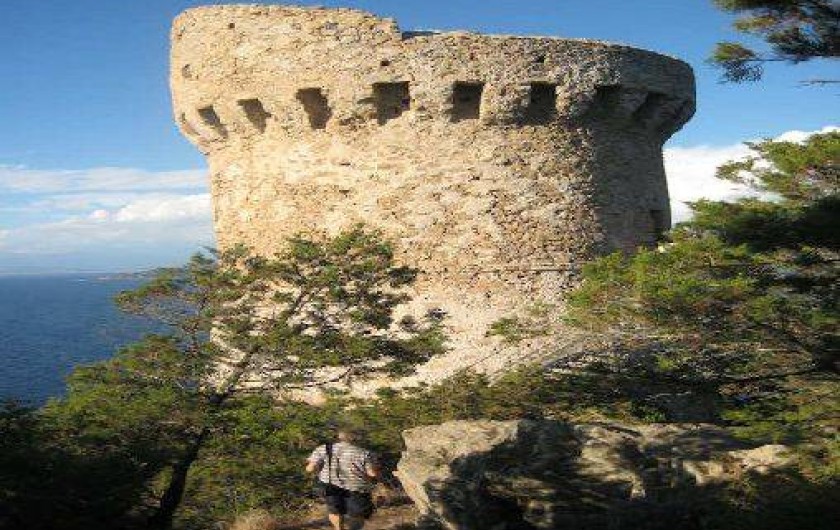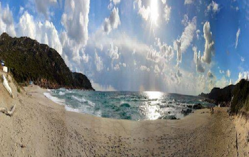 Elle est située à flanc de colline à 800m d'une très belle plage de rochers, à 3 km d'une superbe plage de sable fin et à 4km d'une magnifique tour génoise accessible par une très agréable balade en bonne partie ombragée.