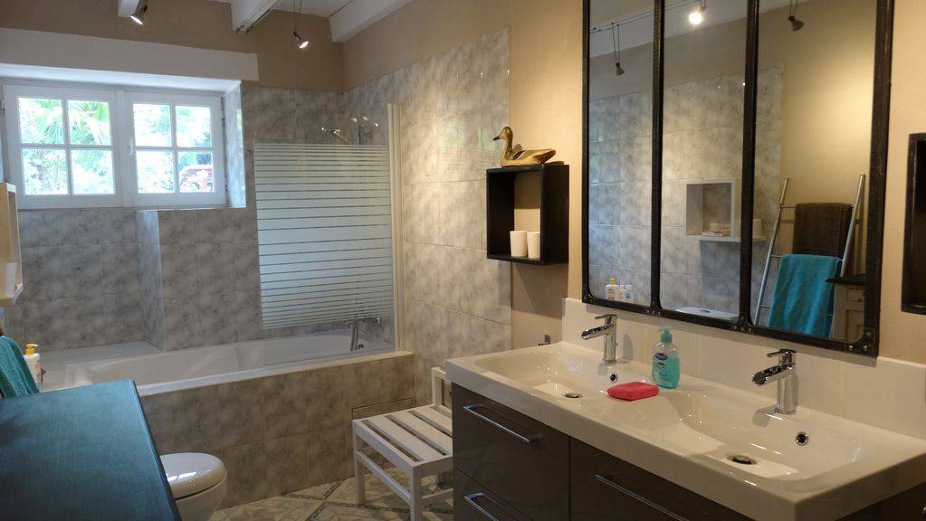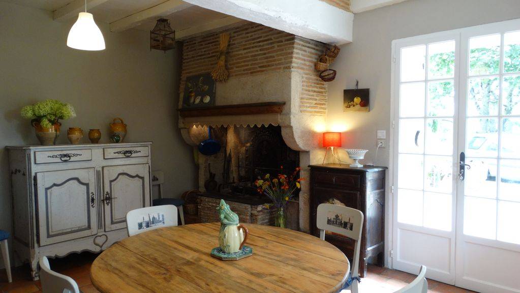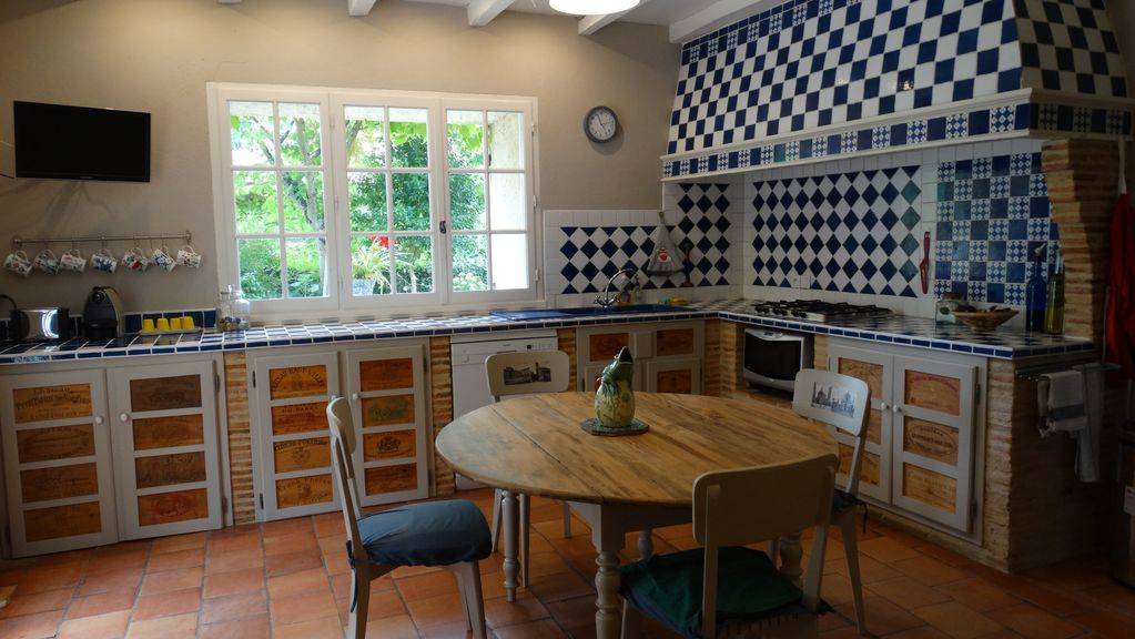 La cuisine ( avec une grande cheminée ) est toute équipée : 6 feux gaz , lave vaisselle, four, micro onde, frigo, congélateur, 2 cafetières ( une Nespresso et une filtre ) ,mixeur, batteur, grille pain , bouilloire, wok, vaisselle, casseroles , poêles ,plats à four , etc....