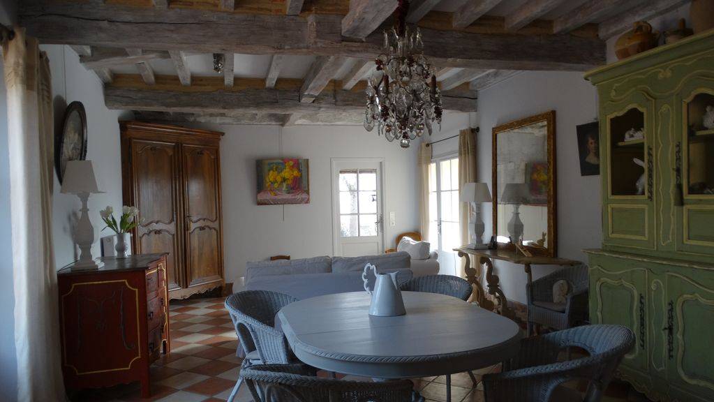 Salle de séjour (donnant sur la terrasse de la piscine ) avec salon TV.