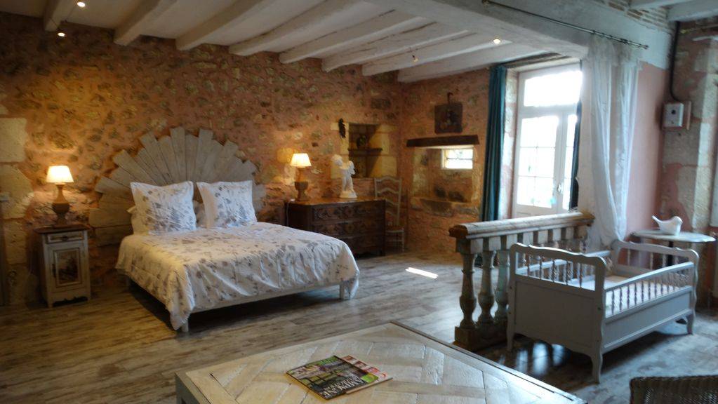 avec 1 lit de 160 cm x 200cm et un lit enfant de 2 à 3 ans