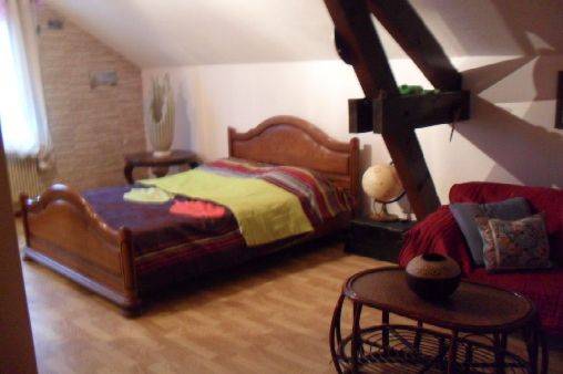 - 1 chambre avec un lit 2 personnes, meublée d’une armoire, d’une commode et d’un bureau