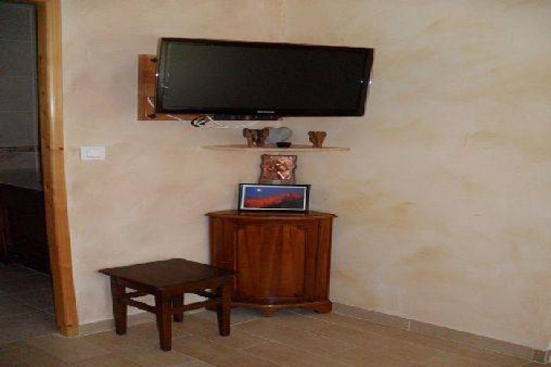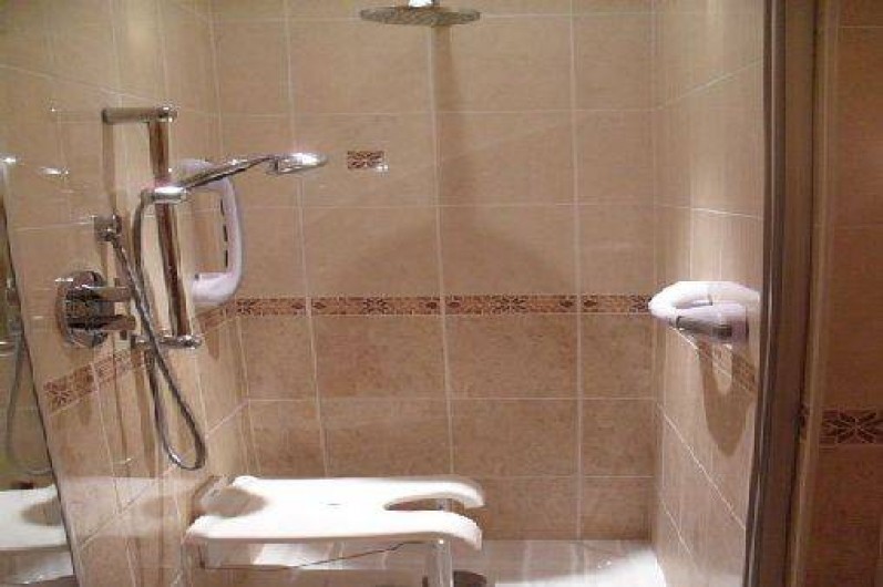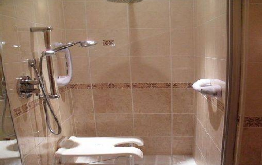 -1 chambre avec un lit 2 personnes et télévision, étagères de rangement et penderie, d’une salle de bain (douche à l’italienne) attenante à la chambre